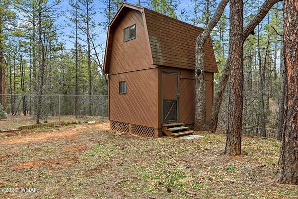 Welcome to your serene mountain retreat! This beautiful log-sided cabin combines rustic charm with cozy comfort, offering the perfect hideaway surrounded by towering trees and open space. Set on a generous lot, there's plenty of room to roam, relax, or entertain. Step inside to find warm wood tones, natural light streaming through the windows, and a comfortable ambiance that immediately feels like home. The open living area is ideal for gathering, while the inviting deck lets you enjoy tranquil mornings, vibrant sunsets, and the peaceful sounds of nature. Outside, you'll discover exceptional amenities - including a large RV garage with ample storage for your outdoor toys and gear. A charming playhouse adds a touch of fun. Enjoy the rare combination of peaceful, private living with easy access to shops, dining, and everyday amenities. This property has a fully fenced yard which provides security, privacy and plenty of room to enjoy outdoor activities.