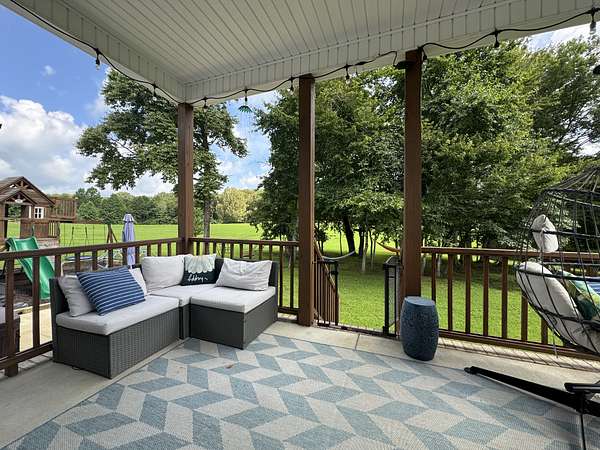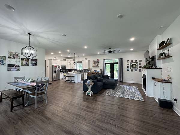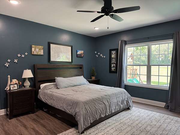 Beautiful open floorplan home on just over 2 acres. Smart features including a Ring security system, doorbell, and multiple Ring cameras with smart lights, nest thermostat, and a smart lock on the front door. Hardwood floors throughout living areas downstairs with tile in bathrooms. Feature wall in master. Gas fireplace for cold nights with built-ins on both sides for storage. Finished bonus room with half bath. Projector and 100" screen included, perfect for movie nights. Granite countertops with a gas stove in the kitchen. Storage building recently added at the side of the home large enough for a boat or extra vehicle parking. Covered front and back porches perfect for enjoying the view and a backyard that any family would love! There's a hot tub for relaxing, a rubber mulched playground, rock climbing wall, trampoline, ninja rope and a zipline in the woods for fun! Must see in person to truly appreciate all of the work that has gone into this beautiful home! Owner/agent