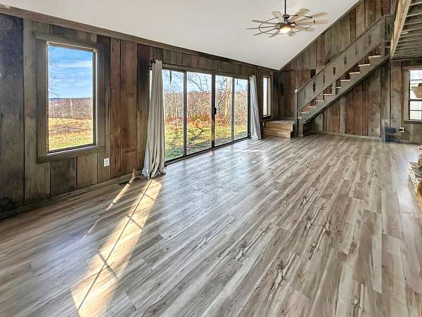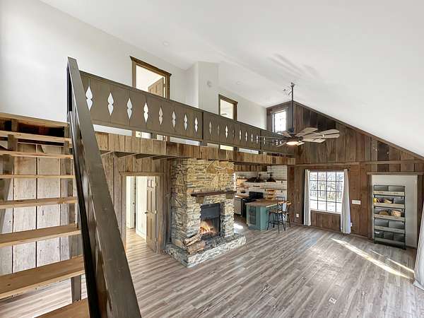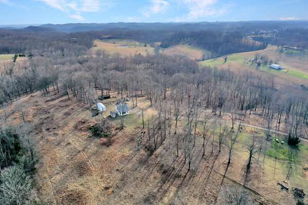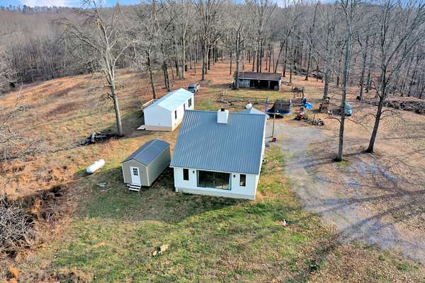 The main cabin features 3 bedrooms and 2 bathrooms along with an updated farm-style kitchen and a new HVAC unit. A nearby utility shed provides extra storage and space for a small office or workspace. It also has a 3 stall barn for small or large farm animals.