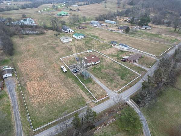 Beautifully maintained horse farm offering 2,514 sq ft situated on 6.2 scenic acres with a big pond. Property is an equestrian's dream featuring a 40x20 two-stall barn with hay room and tack room, plus an attached 40x30 shop ideal for workshop space, equipment storage, events, or hobby use. Barn includes a water spigot. Large riding arena also on site along with a 10x20 storage building and gazebo. Home offers 3 bedrooms and 2.5 baths with beautiful hardwood flooring and custom wood trim throughout. Huge country kitchen with pantry and closet has large breakfast area and a separate formal dining room. Kitchen appliances remain. Main-level primary suite includes walk-in closet plus two additional closets and an oversized tiled shower. Upstairs features an oversized bedroom with built-in desk, bookcases, walk-in closet, and additional closet space. Abundant walk-in attic storage available. Great room showcases soaring ceilings with exposed wood beams, wood-burning fireplace, and hardwood flooring. Oversized garage accommodates 4+ vehicles with additional storage space. 25x12 Florida room (not included in square footage) providing additional space to relax and enjoy the peaceful farm setting. Ideal property for horse enthusiasts or those seeking private country living with multi-use outbuildings and event potential all within minutes of the city of Hendersonville.