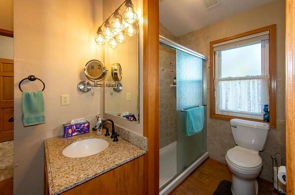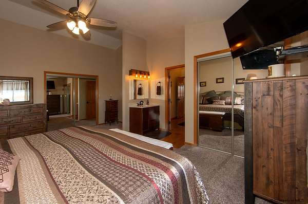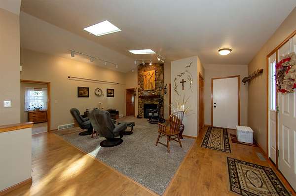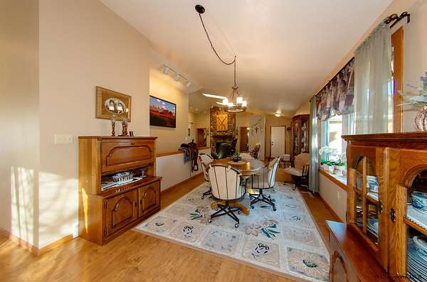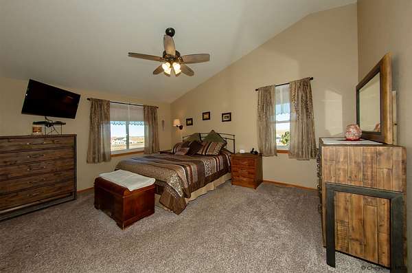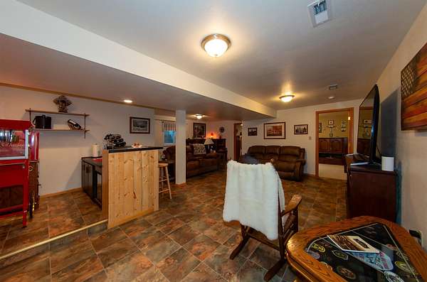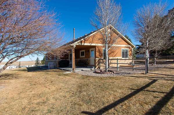 Est $3,644/moImpressive is the word for this close in rural home. Two minutes from town, this is a very private property in great condition. This exterior Stucco home features an open floor plan, granite counter tops, gas fireplace main floor laundry, glazed windows, natural solid core doors, plenty of storage and large sized rooms. The lower level has 2 bedrooms, large family area and a wet bar for all your entertaining needs. The exterior has hail resistant shingles, sprinkler system, and fencing to include a dog proof fenced area. The grand approach drive will lead you through the heated 48x30 out building that has a large walk-in meat cooler. This is truly an impressive property.