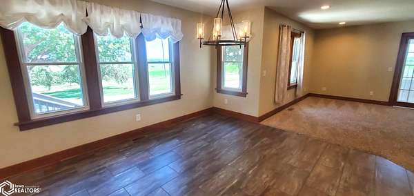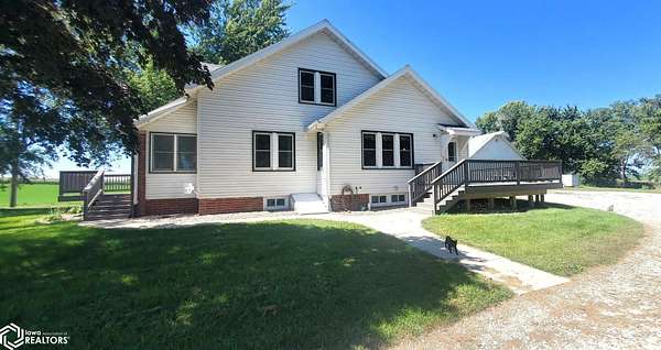 Every once in a great while, a special acreage property comes on the market. This is one of those rare opportunities!! This 4-5 bedroom home has been professionally renovated room by room, with only the best in materials and expert craftsmanship. Fully spray foam insulated, new sheetrock, wiring, fixtures, plumbing, high quality replacement windows, flooring. New roof April 2025. Now in more detail-starting with the kitchen- high end cabinets, high end appliances that stay. Heated tile floor in bathrooms. Large family room with French doors to sunroom, which leads to nice sized deck in front of the house with a great view of the orchard with mature apple, pear and peach trees. Finish off the main floor with a nice primary bedroom with walk-in closet. Upstairs- nice wide hallway serving 3 bedrooms with nice closets. Now the lower level- full kitchen with appliance that stay, family room, bonus room that could be 5th bedroom, spacious laundry with appliances that stay, as well as nice bathroom with walk in shower. And storage , and more storage. Outside- all buried electrical service- heated, air conditioned, insulated oversized 2 car garage, BIG barn, straight as an arrow, all covered in steel, with 2 overhead doors, and concrete floors, with plenty of concrete outside, corn crib with attached lean to, machine shed, dog kennel. Just a mile outside of Manning and only 1/4 mile of gravel. This is the dream acreage you have been waiting for. Call today!!