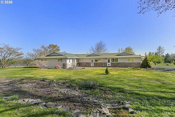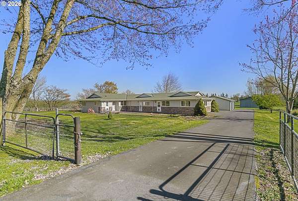 OPEN HOUSE 1/4/26, 1:00-4:00 PM. Welcome to your own piece of Oregon history and charm in Butteville, one of the state's oldest communities and just moments from Champoeg State Park. This rare single-level home sits on over 5 acres of beautifully maintained land, offering space to live, grow, and create the lifestyle you've been dreaming of. With dual living potential, the thoughtful floor plan includes five bedrooms and three full bathrooms, featuring two primary suites-ideal for multi-generational living, guests, or simply spreading out in comfort. The home is spacious, warm, and move-in ready, yet it also includes remodel plans, allowing you to customize your dream home. A newer roof & HVAC system provides peace of mind, while future upgrades enable the property to grow with you. Step outside to explore the incredible amenities. A detached three-car garage and a massive 60x30' shop open up endless opportunities for hobbies, projects, or storage. The paved driveway makes for easy access, and RV parking with full hookups means you're always adventure-ready-or prepared to host friends and family in style.The land itself is a highlight. Pick fresh fruit from your own orchard, enjoy the peaceful sounds of the countryside, and watch sunsets from the back porch. With over 5 acres, there's room for gardening, animals, or simply relaxing in your private retreat. Living in Butteville means being part of a community rich in history. Just down the road, Champoeg Park offers hiking, biking, camping, and river access-while also being the historic site where Oregon's provisional government was formed. This property offers a rare opportunity to live in close proximity to both nature and history, while enjoying modern conveniences nearby. Space, history, flexibility, and opportunity-this home offers the best of it all.