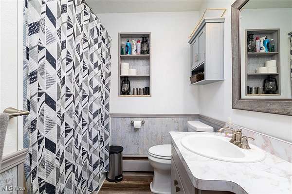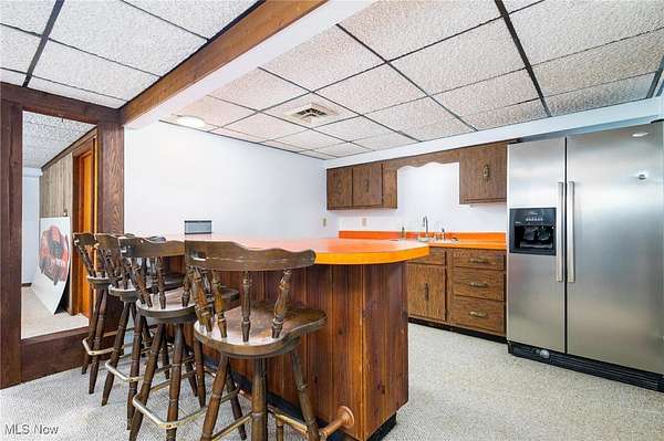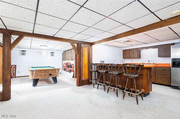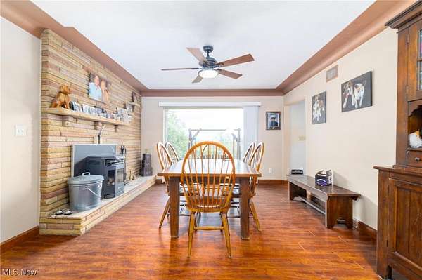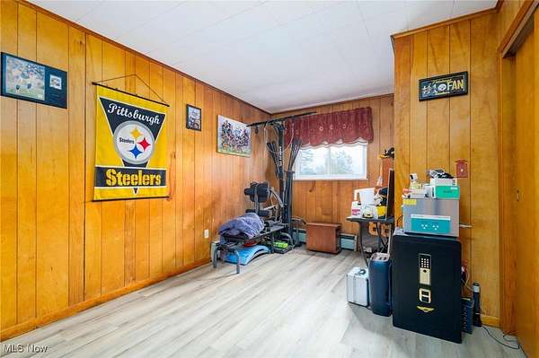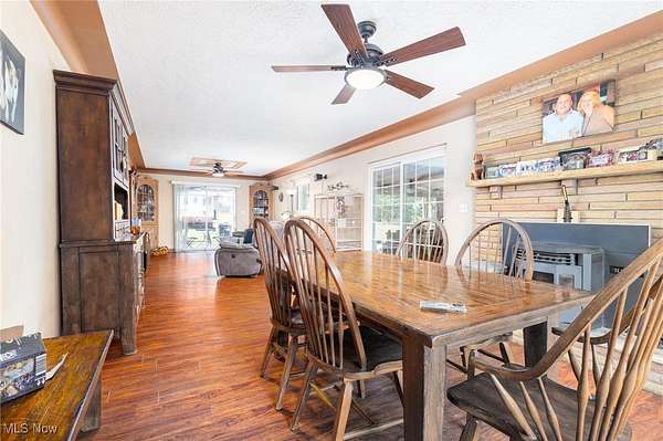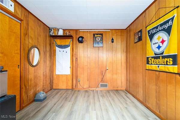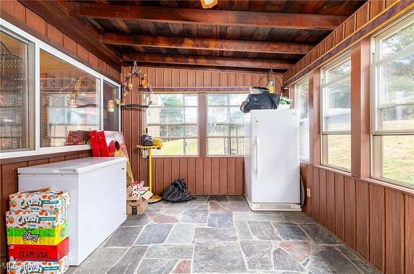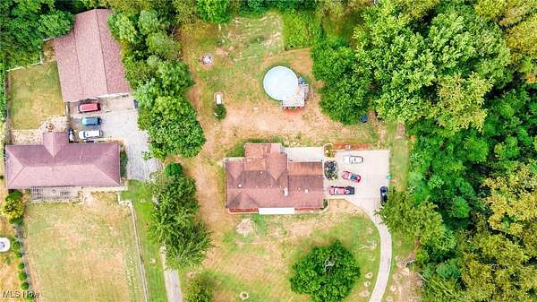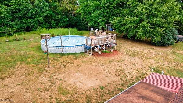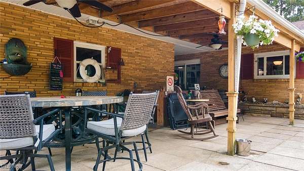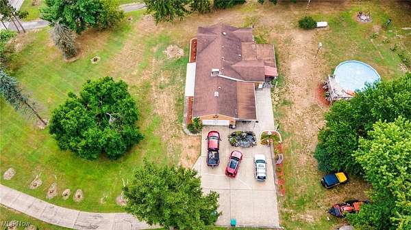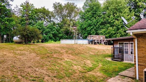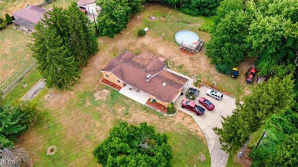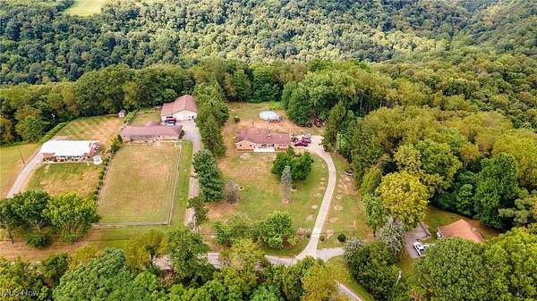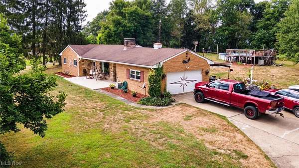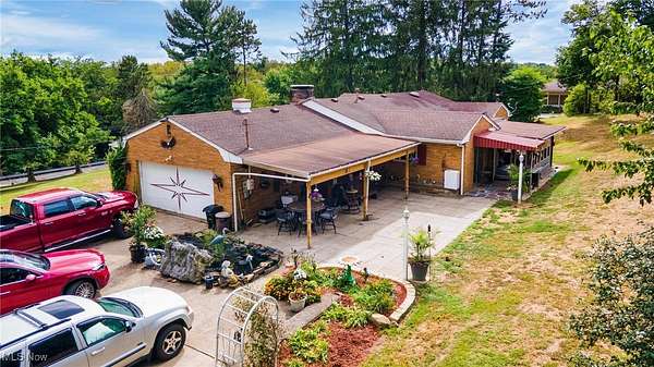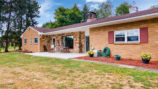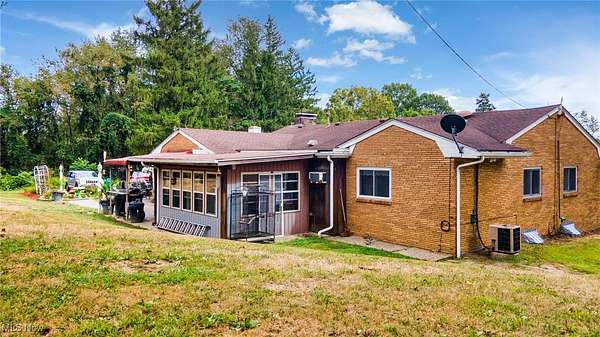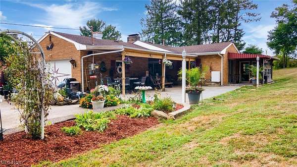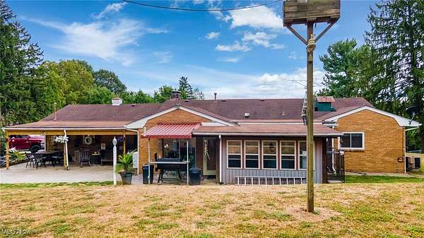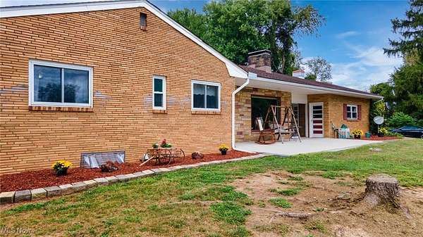 MOTIVATED SELLER! WILL LOOK AT ANY REASONABLE OFFER! FRESHLY UPDATED/PAINTED BATHROOMS AND REC ROOM-NEW PIX 3/4 BEDROOM, EASY ENTRY HOME AWAITS ITS NEXT OWNER!! Over approx. 2500 sq. ft this brick ranch offers, also, an easy entry and a convenient breezeway leading to a welcoming living/dining room combo. Enjoy seamless indoor-outdoor living with 2 sets of sliding doors that lead to a covered patio, perfect for hosting gatherings year-round. This home is designed for entertaining, just off the updated kitchen, a den that can accommodate all your hosting needs with roasters or crockpots. The sunroom features a gorgeous slate floor that captures the morning light. The dining area has two amenities to offer-a pellet stove surrounded by a cozy mantle and a picturesque window to embrace stunning views of the Ohio & West Virginia landscape, especially after the leaves have fallen. Main floor updated bathroom boasts a jacuzzi tub to provide modern comforts, while the master bedroom boasts his and hers closets and a convenient half bath. A spiral staircase leads to a huge rec room with a wood-burning fireplace and a wet bar, perfect for continuing the party or relaxing in the game room. A bonus room feature of potential soundproofing (per previous owners) adds to the allure of this home. Plenty of storage space, a walk-out entrance to the patio, a saltwater above-ground pool with deck, and two additional outbuildings are just some of the added bonuses. The concrete driveway offers comfortable parking for 5-6 cars, with the unique option to park between the tree stumps. This property is located just shy of 2 acres and has an oversized one car garage. Located just approximately 2 miles from a major highway, this property offers the perfect balance of peaceful country living with convenient access to amenities. Don't miss the opportunity to make this exceptional home yours!