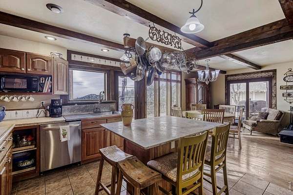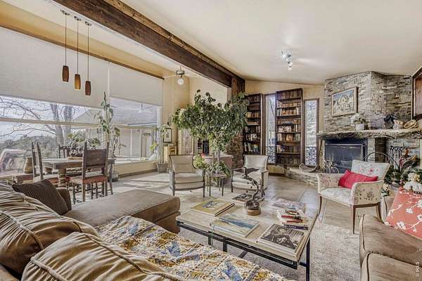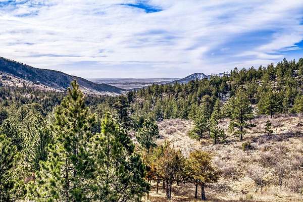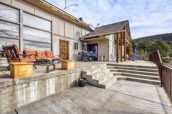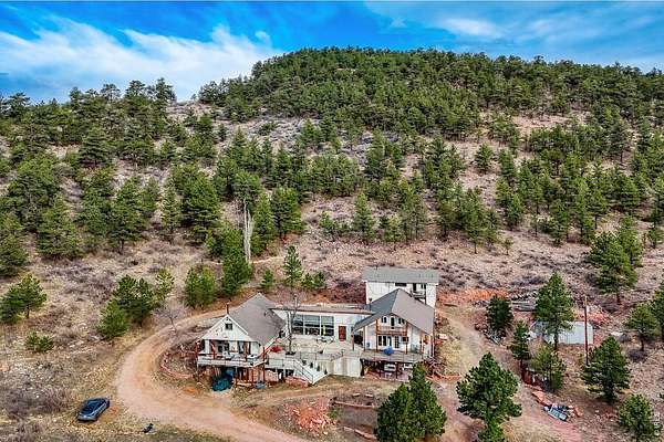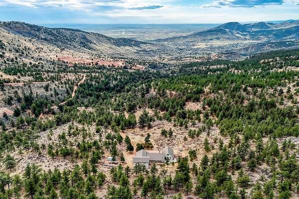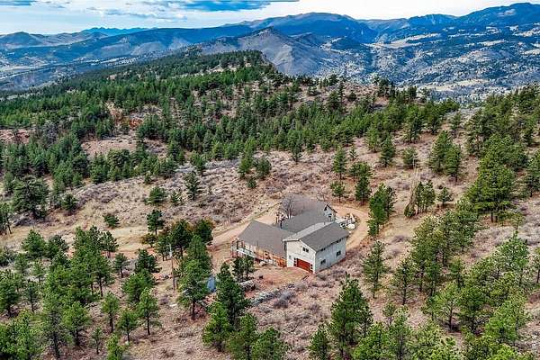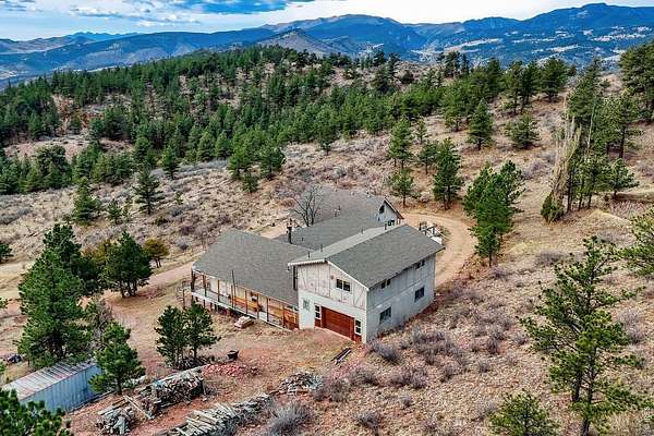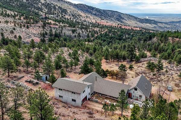 PRIVACY. Panoramic VIEWS of Pikes Peak. Apple trees on your driveway up! This unique flagstone/concrete solarium home is perched atop of its own hill with 21.4 acres to offer in Boulder County. Surrounded by 1200 acres of Wildlife reserve land for the monitoring of bald/golden eagles, and 80 acres of private land. Dramatic West/East Wing layout the home centers a sun warmed solarium living room with 15-foot floor to ceiling windows. Hardwood flooring throughout. French inspired finishes. Marble and tile countertops. Stainless Steel Appliances. Multiple Private living areas. Flagstone floor Wine Cellar doubles as a mother-in-law retreat. Art Studio/Den. Upgraded Fireplace. Expansive reinforced NEW concrete deck that sprawls the entire front of the home. Grapevine-covered patio just off the primary suite. The primary bathroom features dual bathrooms and separate his-and-hers closets. Private water well and cistern system. LARGE Insulated Drive Through Garage and storage. Rock warming South facing driveway. Spacious Outdoor flat area to build your next shop, garage, or barn. Built in concrete safe room. Thoughtfully priced to allow for your final custom outdoor enhancements, the property presents a compelling upside. NO Drive BYS, by Appointment only.