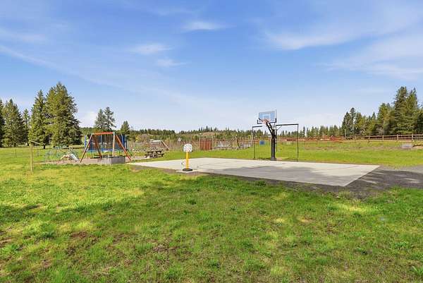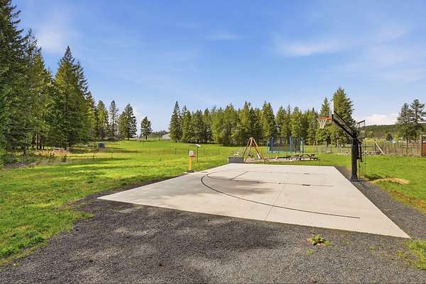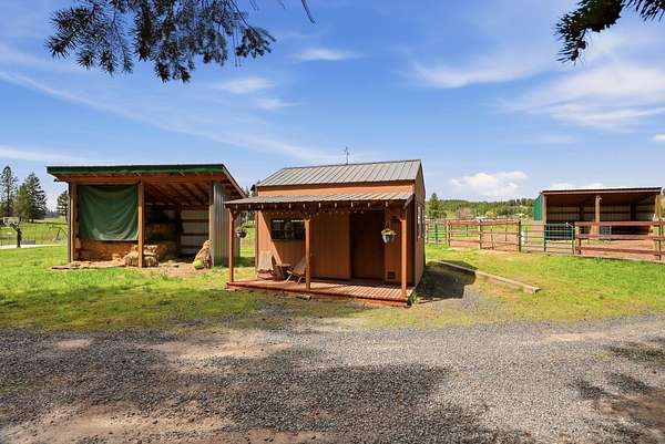 10 fully usable acres, a 40x50 heated shop, and a turnkey setup that's nearly impossible to recreate at this price. A rare blend of function and lifestyle- horses, trails, garden, and space to live expansively from day one. Fully fenced and cross-fenced, the property is thoughtfully set up with a riding arena, horse shelter with two run-ins, a solar-lit tack room, chicken coop with brooder, shooting range set up, wooded trail system, a huge irrigated garden with auto-drip system and a basketball court! The insulated shop features RV hookups, its own 100-amp service & separately heated back flex space. Inside, the 2,640 sq ft home is METICULOUS and offers tray ceilings, new LVP flooring, two living areas, walk-in closets in all rooms & a primary suite with a separate gym space! Built in 2005 with a newer roof, vinyl windows, a 4-year-old heat pump, and a permanent foundation. A strong 5 GPM well with constant pressure pump supports the property with ease. A truly dialed-in acreage home just north of Spokane!