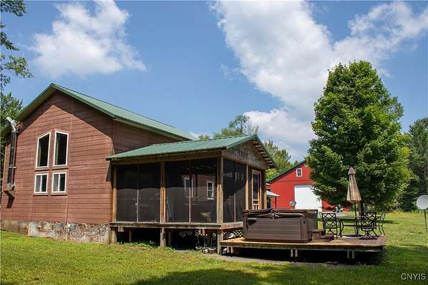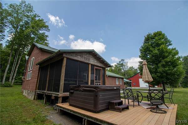 ADIRONDACK FOOTHILLS RETREAT WITH INCOME POTENTIAL EXCEPTIONAL RECREATIONAL COMPOUND - minutes to Hinkley Reservoir. Two generously sized bedrooms and a large loft offering space for 16 guests in the main house, 2 full baths & laundry! Screened 16x16 deck offers a spot to unwind & enjoy the beauty of the surrounding nature, with a hot tub, and grounds incl. 2 cabins that sleep 5 and an RV electric hookup. All backed up by a Stand by generator. PRIME LOCATION - Nestled in the western foothills of the Adirondacks, this property offers the perfect blend of privacy and accessibility. Close to snowmobile trails and 3.5 miles from the public boat launch at Hinckley Reservoir, you'll enjoy year-round recreation at your doorstep. MULTI-STRUCTURE OPPORTUNITY - Main house with loft accommodates up to 16 guests, plus two additional cabins sleeping 5 each, and designated RV area. Perfect for family compound, vacation rental business, or hunting/fishing lodge. Along with a 36x60 high roof pole barn with a 14'x14' overhead door, man door and electric. OUTDOOR ENTHUSIAST'S PARADISE - Minutes to 2,880-acre Hinckley Reservoir offering boating, fishing, swimming, and water sports. Direct access to snowmobile trails for winter recreation. Great hunting; deer, bear, turkey and small game in the surrounding area. INVESTMENT POTENTIAL - Established rental property with multiple income streams. Unique luxurious Adirondack cabin rentals on the snowmobile trails, Hinckley Reservoir and West Canada Creek are in high demand in this area. CONVENIENT ACCESS - 30 minutes from Utica, providing easy access to urban amenities while maintaining rural tranquility. This turnkey recreational property offers immediate income potential or the perfect family retreat in one of New York's most beautiful recreational areas. Don't miss this rare opportunity to own a piece of this Adirondack paradise!