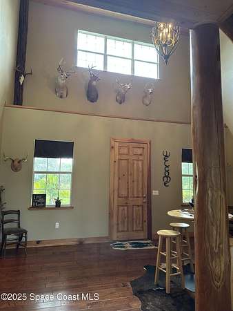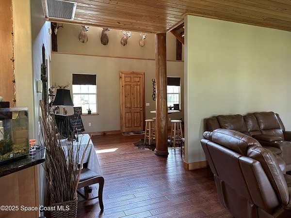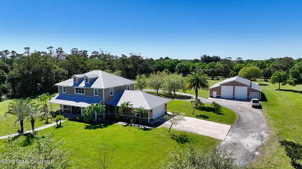 Est $5,224/moTraditional Farmhouse with modern touches on 4.82 acre horse farm and/or agricultural property. Home features 5 beds, 3.5 baths, stained wood floors and ceilings, unique cypress wood staircase, large kitchen with granite counters and stainless steel appliances, enormous master suite, impact windows, CBS with concrete siding. Plenty of storage in the 3200 sq ft detached garage, 5 rollup doors, half bath and RV hookup. Large enough for wedding venue!
