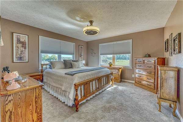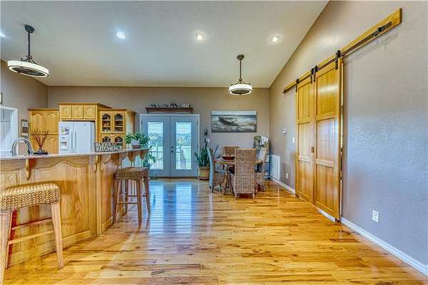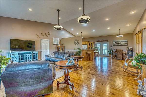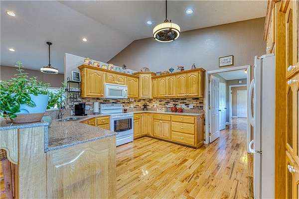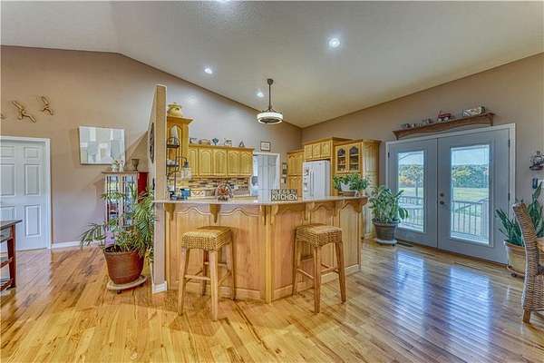 Experience peaceful country living on this 39.5-acre property featuring a custom-built, one-owner home with stunning panoramic views. The 3-bedroom, 2-bath layout offers a split and open floor plan, perfect for both comfort and entertaining. Inside, you'll find real hardwood floors, granite countertops, and quality craftsmanship throughout. Step outside to enjoy the spacious acreage and a detached shop with electric and water, ideal for hobbies, storage, or a workspace. A rare opportunity to own a well-maintained home with acreage in the heart of Omaha's scenic countryside.