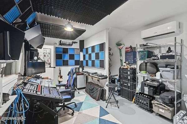 Set behind a solar powered gated entrance & surrounded by nearly 4 acres of fully fenced desert beauty, this tri level residence offers privacy, panoramic mountain views, & an exceptional blend of comfort & versatility. Positioned on a corner lot with sweeping vistas in every direction, the home delivers a refined rural lifestyle with room to live, work, & create. The main level welcomes you with dramatic cathedral ceiling living room, a warm fireplace, & picture windows that frame the mountains & the beautifully maintained backyard. The spacious kitchen is designed for gathering & everyday ease, featuring granite countertops, a large island, a new build in microwave & electric oven, a gas cooktop, and extensive cabinetry that provides outstanding storage,& charming bay window with a view.