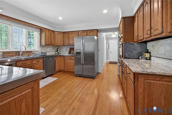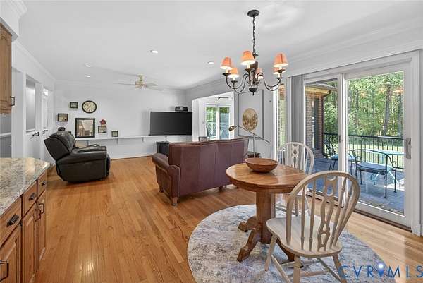 THIS 4 BEDROOM 2.5 BATH RANCH HOME ON 10 ACRES IN HANOVER COUNTY IS WAITING FOR YOU! Step in from the front screened porch to find a large foyer that is the center of the home. Just steps away you will find a formal living room with built ins and a gas fireplace and a formal dining room with custom mouldings, a gas fireplace and french doors that lead you to a patio perfect for extending your entertaining space. The chefs kitchen is a dream with SS and granite countertops, tile backsplash, a built in buffet, Wolf cooktop, wall oven, Advantium microwave, 2 dishwashers and it opens to the eat in area and the family room and sunroom where you can access 2 more patios. Head down the hallway to find the primary bedroom that also accesses one of the patios and has a beautifully upgraded en suite bathroom with 3 large closets, a linen closet, double vanity with storage, jetted tub, easy entry tiled shower and a toilet closet. There are 3 more bedrooms all with ample closet space that sheare the full hall bath with a single vanity with storage, garden tub, tiled easy entry shower and toilet. A large laundry room with sink, folding counter and storage, a half bath and 2 car attached garage complete the space. HDWD floors throughout, water filtration syster, Rinnai tankless hot water heater, NEW oven and microwave, central vac, NEWER heat pump and 20X12 shed perfect for storage or a workshop area. Located close to the interstate and minutes from Short Pump, do not miss this opportunity! SCHEDULE YOUR TOUR TODAY!