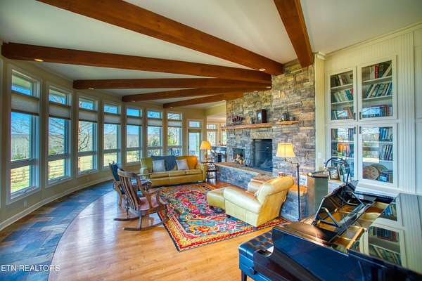 This IS property has a serious attitude. Situated on a flat piece of land OVERLOOKING most of your 83.47 acres with 2 ponds, fenced pastures & Cross-fenced. 2 oversized barns, 2 working grain silos, LARGE run in shed. Back up General whole house generator. Yet your eyes penetrate even further into the picturesque valley views packed with trees. Hay is harvested from this property. Cows, Horses, Sheep, goats & farming opportunities. First entering you are met with slate flooring which then leads to solid hardwood floors. Step down into the lower level Living room with wood beams, inset lighting, Built in bookcases, breathtaking 1/2 circle of endless windows & a stacked stone wood burning fireplace. Granite kitchen counters, 2 sliding doors leading you to the back decking. Separate Laundry room with a dog bathing system. CONTINUAL POUR FOUNDATION. Oversized Lower level bedroom / workout room or music studio. My photo shows a baby grand piano in it. Master bedroom suite has its own covered decking. Such a variety of budding trees surround you. Also tons of native plants that attract Butterflies. Raspberries, Blueberries, Pear, Apple & Blackberries. The experience in the house will stop you just so you can catch your breath. Then you begin to take in the goings on of the outside. You FEEL LIKE an OBSERVER of NATURE.