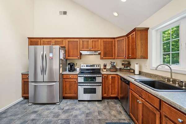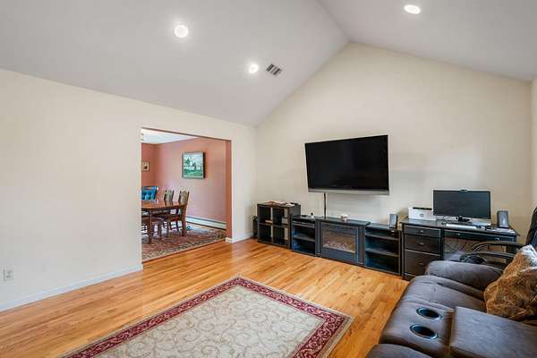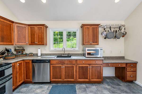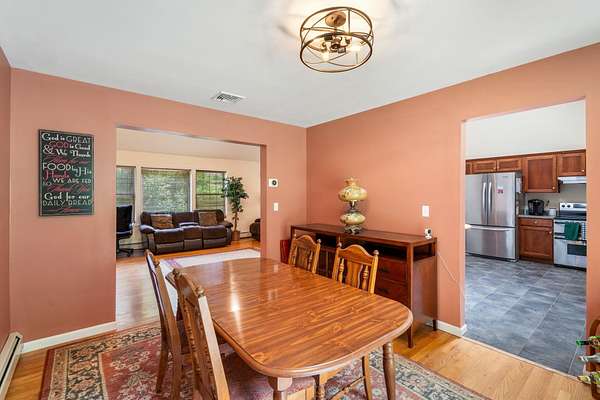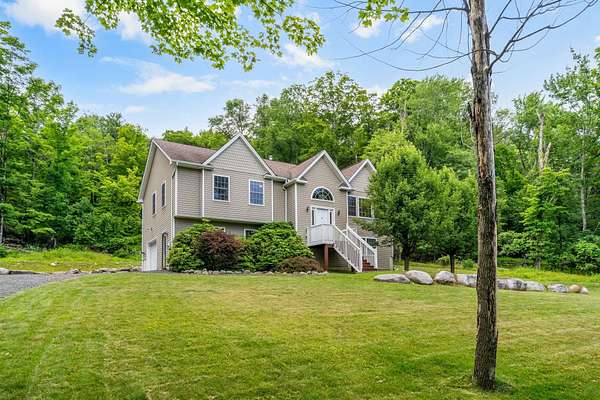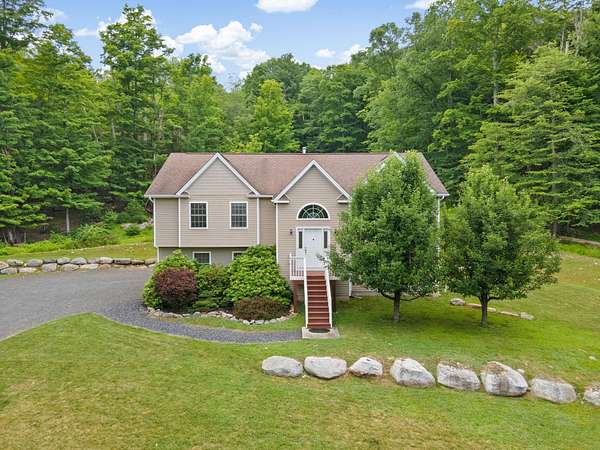 Welcome to Your Ideal Retreat in Mamakating! Discover this beautifully maintained 3-bedroom, 2.5-bathroom Raised Ranch, nestled on 2.14 scenic acres in the desirable Town of Mamakating and within the sought-after Pine Bush School District. Conveniently located just 15 minutes from the charming Hamlet of Pine Bush--set in the shadow of the stunning Shawangunk Ridge--you'll enjoy easy access to local eateries, boutique shops, cozy cafés, shopping centers, and banking services. Major highways, including Interstate 86, are within a 30-minute drive, making commuting and weekend getaways a breeze. Step inside to find an inviting eat-in kitchen featuring abundant cabinetry, stainless steel appliances, vaulted ceilings with a skylight and recessed lighting, and ceramic tile flooring. The adjacent dining area and formal dining room are perfect for entertaining, enhanced by sliding glass doors that let in ample natural light. Rich hardwood flooring flows into the spacious living room, which also boasts vaulted ceilings for an open, airy feel. The primary suite offers wall-to-wall carpeting, an extended closet, and a private en-suite bathroom with a shower/tub combination. Two additional bedrooms and a second full bathroom complete the main level. The lower level includes a generous recreational space with wall-to-wall carpeting, recessed lighting, a half bathroom, a laundry room, and plenty of storage. Enjoy outdoor living with a rear deck overlooking the private backyard, a large front yard, and tasteful landscaping that blends seamlessly with the surrounding wooded environment. Additional features include a one-car attached garage and ample driveway parking. Don't miss this opportunity to own a peaceful slice of the Hudson Valley with both comfort and convenience!