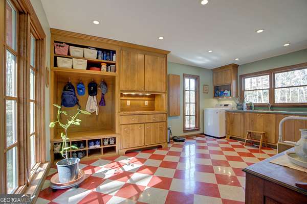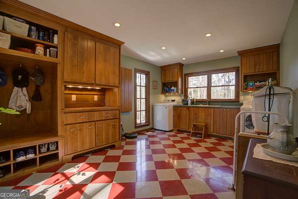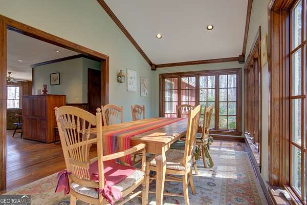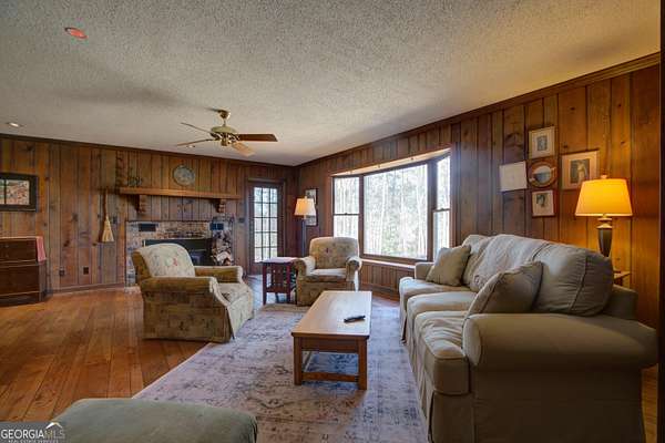 Private Woodland Estate on Nearly 20 Acres...Tucked away among the peaceful rolling landscape of Floyd County, this distinctive residence offers nearly 20 acres of private wooded serenity, blending timeless architecture with the quiet beauty of the North Georgia countryside. Originally constructed in 1973, the home reflects a classic lodge-inspired aesthetic with rich natural wood interiors, exposed craftsmanship, and warm textures throughout. The approach reveals a striking facade with cedar-style siding, a prominent brick chimney, and expansive surrounding lawn framed by mature hardwoods. Inside, the residence unfolds into inviting living spaces designed for both comfort and gathering. The main living room is anchored by a wood-burning fireplace with brick hearth and custom mantle, creating an intimate focal point for relaxed evenings. Warm wood-paneled walls and wide plank flooring add character and depth while large windows frame tranquil views of the surrounding woodland. The kitchen offers a functional and welcoming space with ample cabinetry, stainless appliances, and a central island ideal for casual dining and entertaining. Adjacent to the kitchen, the home's light-filled dining room is wrapped in expansive windows that invite nature indoors, offering a picturesque setting for gatherings with family and guests. A generously sized mudroom and laundry suite provides exceptional storage and practicality, featuring built-in cabinetry and direct access to the outdoors-perfect for an active lifestyle or rural living. The primary suite is situated on the front of the home, and features lots of natural light and an oversized newly renovated luxury tile shower, and vanities. Throughout the home, thoughtful craftsmanship and natural materials create a warm and inviting atmosphere that reflects the beauty of its surroundings. Outside, the nearly 19.63+-acre property provides rare privacy and endless possibilities-from gardens and outdoor living spaces to recreational trails and future expansion. Property Highlights * Approx. 2,038 square feet of living space, plus basement * 19.63+- acres of private wooded land * Classic lodge-inspired architecture * Living room with brick fireplace * Sunlit dining room surrounded by windows * Spacious kitchen with island and stainless appliances *Completely remodeled bathrooms * Large mudroom and laundry suite with built-ins * Expansive lawn and wooded landscape A rare opportunity to enjoy private countryside living just minutes from the amenities of Rome, this property offers timeless charm, natural beauty, and space to create a truly exceptional retreat.