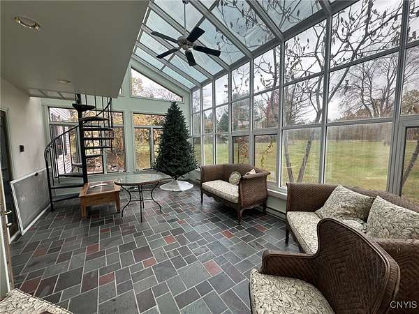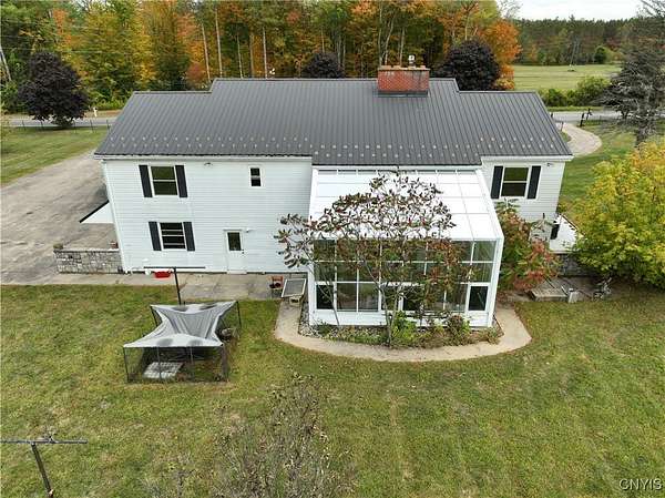 A Distinctive Estate for Refined Living. Set amidst 3.4 acre of serene privacy, this remarkable embodies timeless elegance and modern comfort.. From its grand circular driveway with dual gated entrances to the light-filled interiors, every detail speaks of quality and care. The main residence features four spacious bedrooms and two and a hale baths, including a master suite designed for relaxation. The gourmet eat-in kitchen flows effortlessly into a formal dining room and living room with a cozy fireplace, perfect for gatherings both intimate and grand. On the lower level, a gracious family room with a second fireplace and wet bar opens to a breathtaking two-story heated glass atrium, offering a seamless connection between indoor comfort and natural beauty. A second two-story heated and finished building provides exceptional versatility-ideal for a guest residence, artist's studio, or mother-in-law apartment. this dextrorotary property offers an unparalleled blend of sophistication, space, and potential-truly a private sanctuary just moments from everything you need.
