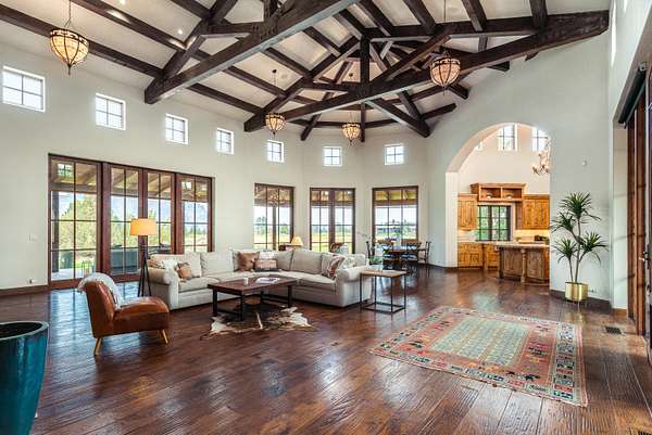 Experience the pinnacle of luxury at Ranch at The Canyons. Perfectly situated to capture breathtaking vistas of Smith Rock and 1,700 acres of pristine ranchland, this custom designed home is a masterpiece of craftsmanship. Rich hardwood floors, soaring exposed beams, and elegant stonework create an atmosphere of timeless sophistication. Three equally beautiful en-suites offer unparalleled comfort, while the chef's kitchen boasts a Sub-Zero refrigerator, Wolf range, farm sink, and wine fridge. Outdoor living is elevated with a vast wraparound covered porch, built-in BBQ, and fireplace, all overlooking panoramic views. Residents enjoy exclusive access to private ranch amenities including the Old Winery Clubhouse, fitness center, steam and sauna rooms, heated pool, pickleball courts, Tuscan stables, and 12 serene lakes. A truly exceptional offering.