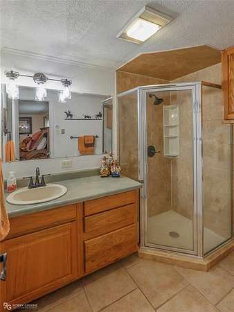Step outside to a stamped concrete patio accented with a custom horse design--perfect for relaxing evenings, entertaining guests, or simply enjoying the surrounding natural beauty.