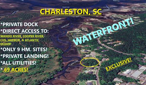 ATTENTION BUILDERS / BOATERS &/OR WATER ENTHUSIAST'S! ALMOST 3/4 ACRE ON THE MARTINS CREEK W/ YOUR OWN PRIVATE DOCK ALREADY IN PLACE!! -- ALL UTILITIES ALREADY AT SITE! (PUBLIC WATER, SEWER & ELECT!) - EXCLUSIVE 9 HOME-ENCLAVE W/ PRIVATE BOAT RAMP ON ADJACENT LOT FOR IMMEDIATE ACCESS TO AND FROM THE WATER WITH YOUR BOAT! (The Easy Life!) -- Updated DOCK w/floater & pilings for permitted Lift! -- DIRECT UNOBSTRUCTED WATER ACCESS TO: WANDO RIVER, COOPER RIVER, CHARLESTON HARBOR, ASHLEY RIVER & THE ATLANTIC OCEAN! - Just moments from Clements Ferry, Mount Pleasant and Daniel Island, offering premier dining, exclusive shopping, Excellent Schools, and easy access to everything! (2 Recent home sales on street - $1,350,000!) - (Creek is Tidal, 1-2 hours on either side of Low tide.)**PLEASE NOTE! - Plats & Surveys, (Including Tree Survey) as well as C&R's are uploaded to the document section of this listing - Along with all other information we have been able to obtain from the sellers, and any/all third-party organizations, including but not limited to city/county and other entities, has been posted to this MLS (under "Documents"). If you do not see the item in question (Plat, Survey, Wetlands JD's, Elevation Cert, Etc., it is because we do NOT have them. -- Unless specifically noted, these items in question, will be the buyer's responsibility, either during the DD period or post-closing. Thank you. - Buyer is responsible for all utilities DD and tap fees.