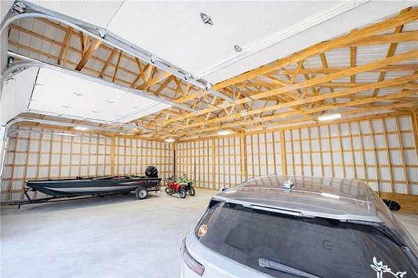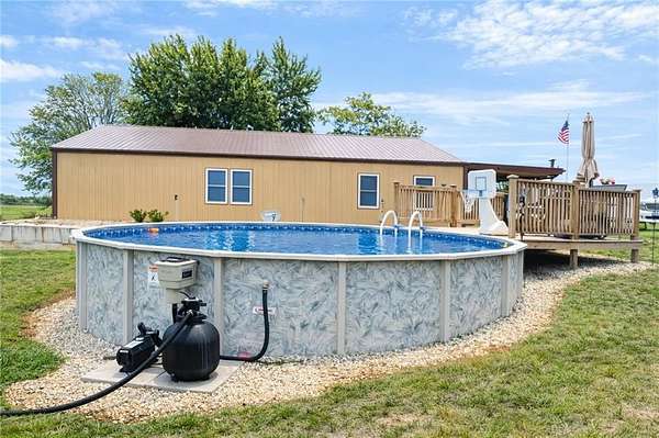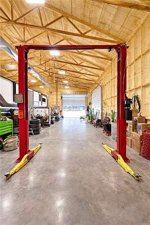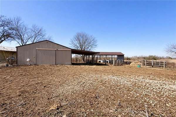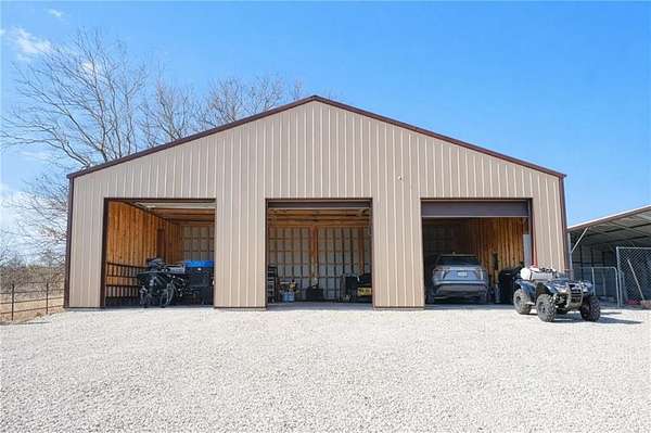 Discover the perfect blend of country living and modern convenience with this impressive 2,560 sq ft barndominium set on 11 beautiful acres. This spacious home features 4 bedrooms, 2 bathrooms, and an office, offering plenty of room for both everyday living and working from home. The primary suite includes a massive walk-in closet and an en-suite bath with a private toilet room for added comfort. The spacious kitchen and living area are ideal for entertaining, complete with a large island, dishwasher, and stainless steel appliances. Just off the kitchen, you'll find a mudroom/laundry room equipped with a water softener. Enjoy peaceful outdoor living on the covered patio that wraps around the front and side of the home, or relax by the above-ground pool with a deck. The property also features a newly built, fish-stocked pond and a storm bunker located near the house. This property is exceptionally well-equipped with six additional structures. The standout is a 40' x 60' climate-controlled shop with 16' walls, three garage doors, a vehicle lift, compressor, washer and dryer, and ample space to store a camper or RV. Across from the shop is a 45' x 32' garage with 12' walls, three garage doors, and a side entry door. Adjacent is a 20'2" x 25' carport for additional covered parking. For agricultural or hobby use, the property includes a 30' x 40' barn with 10' walls, gravel floor, walk-in side door, and front sliding door, plus a 20' x 40' lean-to with dirt floor. There is also a 60' x 14'9" hay barn with 11'8" walls and a gravel floor. Next to the shop, a cozy cabin used as a game room (Games come with property) offers heat and air, carpet flooring, and versatile space for guests, recreation, or a private retreat. With room to roam, extensive improvements, and endless possibilities, this unique property is ready to fit a variety of lifestyles. Buyers are encouraged to verify all measurements and details to their satisfaction. Property is being sold as-is.