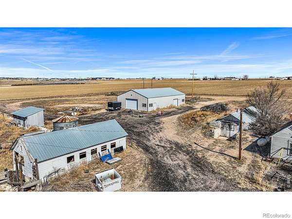 Classic farmhouse potential meets massive opportunity! Discover a rare opportunity to build equity in this classic 3-bedroom, 2.5-bath farmhouse. While the home features a unique open-concept layout with newer editions featuring vaulted ceilings, the true value lies in the expansive acreage and infrastructure. This property is a dream for hobbyists and livestock enthusiasts alike, boasting two massive shops-perfect for an RV, boat, or car collection-alongside multiple additional storage buildings. Offering the ultimate setup for utility and flexibility, the land includes both North Weld County Water and a private well, providing a dedicated water source ideal for horses, livestock, or irrigation. Whether you are looking to modernize a charming farmhouse or need a premier location for your toys and animals, this property offers unmatched potential in a prime location.