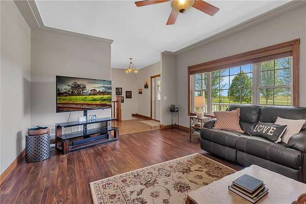 The 3-bedroom, 2.5-bath home provides comfortable, thoughtfully designed living space, including an eat-in kitchen, dining area, living room, and main-floor laundry. The partially finished basement with egress windows offers flexible space for a family room, office, hobby area, or additional bedrooms. Step outside onto a concrete patio, ideal for entertaining or enjoying scenic views of the rolling landscape.