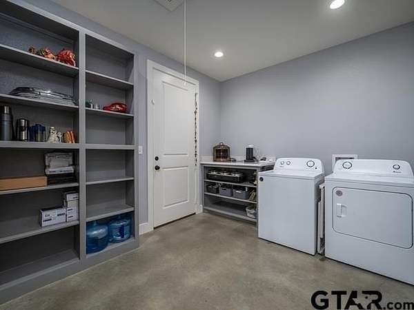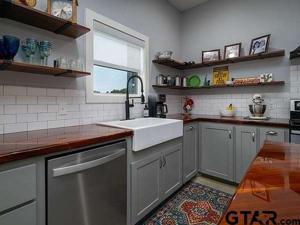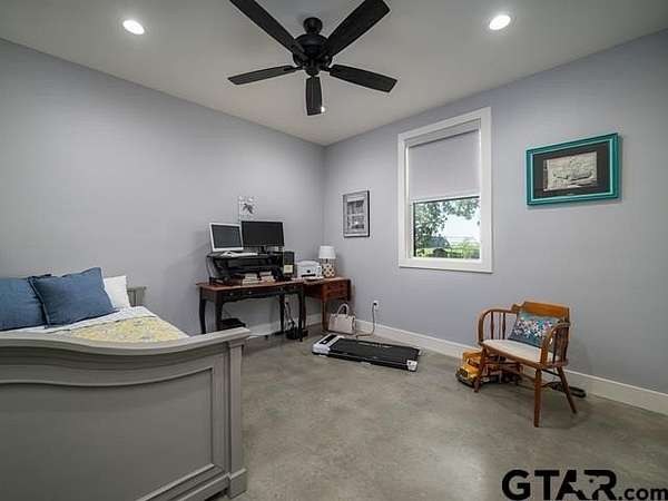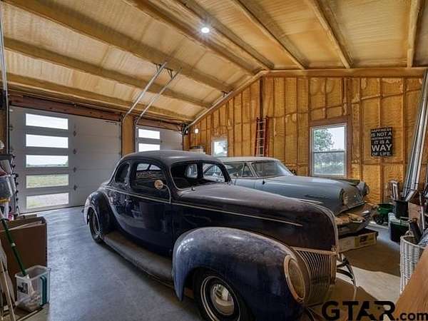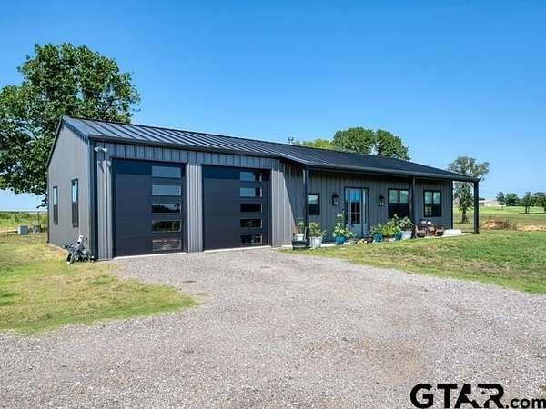GREAT WEEKEND GET-AWAY or FULL-TIME LIVING on 32+ acres. This property has a 2-acre lake in the back, plenty of deer, doves, and according to the owner, ducks for hunting, and with 85%-90% coastal Bermuda pasture is also good to have horses or cattle. It is partially fenced with both barbed wire and pipe fencing. The 2/2 barndominium home is constructed of steel and metal with a covered porch across the front. The kitchen has beautiful wood countertops, stainless steel appliances and an island. The master bedroom has double French doors to the outside, an ensuite with large soaking tub and walk-in closet. This home is an open floor plan home with a wood burning stove that heats the entire living area. The concrete floor throughout is easy to care for. This property is in a great neighborhood with Bullard schools. The big trailers will be moved off of the property, so DON'T MISS THIS ONE!!!