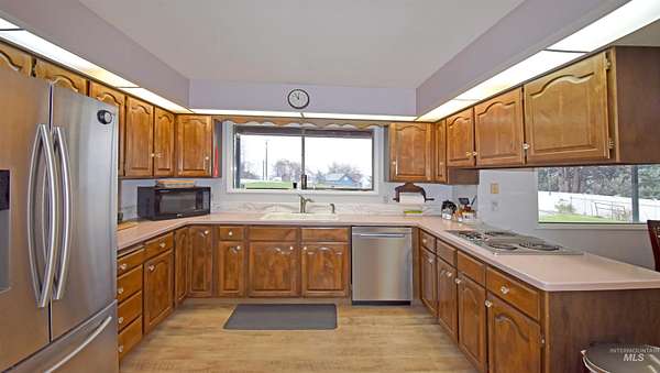 A home with something for everyone! Four levels to enjoy with upper level ensuite featuring a private balcony, included office and walk-through spa shower in the ensuite bath. Three lower level bedrooms, two laundry rooms-one on the main level by the two car garage and one on the lower level. The fourth level holds a family room with walk-out slider to covered patio and expansive backyard and a full second kitchen. Situated on 2.24 acres, there is pasture with sprinklers, shop, and parking for an RV and all your other toys! Set back from the road, with a large circular driveway, covered deck with enormous hot tub and views toward the river, this home has so much to offer.