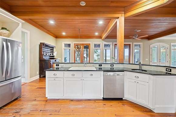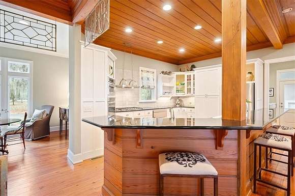 Motivated Seller! Nestled along the serene banks of the Julienton River, this stunning luxury estate offers an exceptional blend of Southern charm, modern comfort, and waterfront living at its finest. Set on 2.57 acres in a prestigious gated community, this home is perfectly positioned for those who seek both privacy and convenience. With deep-water access leading directly to the Atlantic Ocean, breathtaking river views, and proximity to the clubhouse and neighborhood dock, this property is a rare gem for boating enthusiasts and nature lovers alike. The main house is a masterpiece of craftsmanship, featuring three spacious bedrooms and three and a half bathrooms. The primary suite, located on the main level, serves as a private retreat with a lavish en-suite bathroom designed for ultimate relaxation. Upstairs, two guest bedrooms each boast their own private baths, offering comfort and privacy for residents and visitors. A versatile bonus room provides additional space, perfect for a media room, playroom, or home gym. Designed with both functionality and elegance in mind, the chef's kitchen is a dream come true for culinary enthusiasts. A striking tongue-and-groove ceiling adds character to the space, while high-end appliances, gas cooktop, and a walk-in pantry ensure effortless meal preparation. The adjacent wet bar and butler's pantry enhance entertaining possibilities, making hosting seamless and sophisticated. A formal dining room sets the stage for memorable gatherings, while the casual eat-in kitchen provides a cozy spot for everyday meals. The heart of the home is the inviting living area, where high ceilings and rich heart pine floors create a warm and welcoming ambiance. A grand fireplace serves as the focal point, perfect for cozy evenings. Step outside to experience true Southern living on the expansive screened-in back porch, complete with its own fireplace--an ideal setting for year-round enjoyment. An additional open porch allows you to take in the fresh coastal air and stunning river views. Adding to the home's thoughtful design is a dedicated dog-washing station, a unique feature that pet owners will appreciate. Beyond the main residence, a one-bedroom, one-bathroom guest apartment offers additional privacy for visitors or the perfect setup for a home office. With ample storage throughout the property, there is plenty of space to keep everything organized. The true highlight of this property is its unbeatable waterfront location. Whether you enjoy boating, fishing, or simply taking in the beauty of the river, this estate provides direct access to deep water, allowing you to embark on adventures to the Atlantic Ocean right from your backyard. The stunning views and tranquil setting make this home an unparalleled escape from the ordinary. With its blend of elegance, comfort, and prime waterfront positioning, this exceptional estate is more than just a home--it's a lifestyle. Experience the best of Lowcountry living in a private, gated community where every detail has been carefully curated for luxury and relaxation.