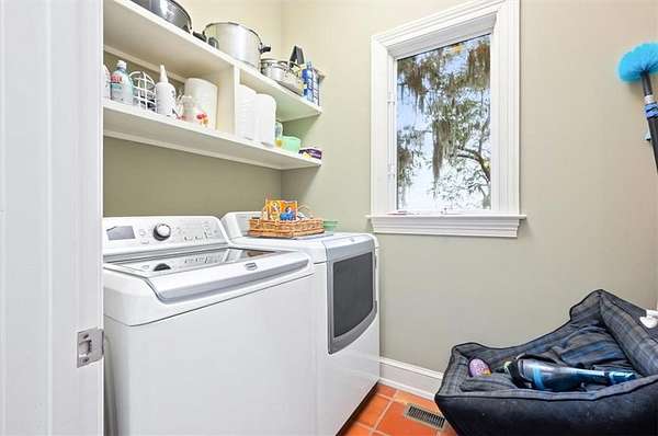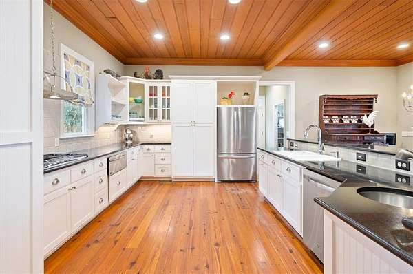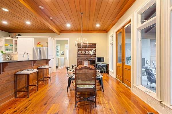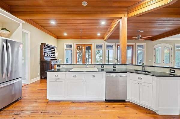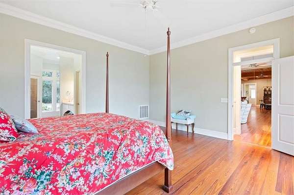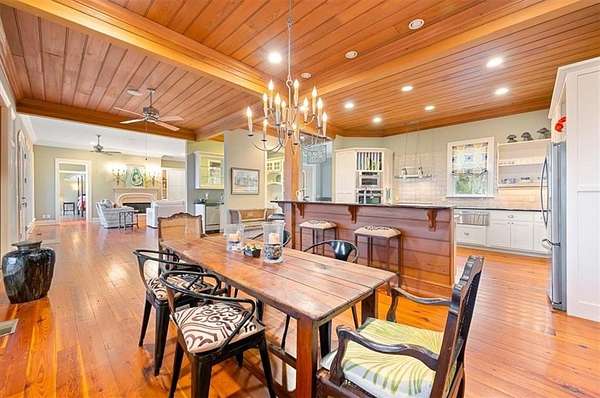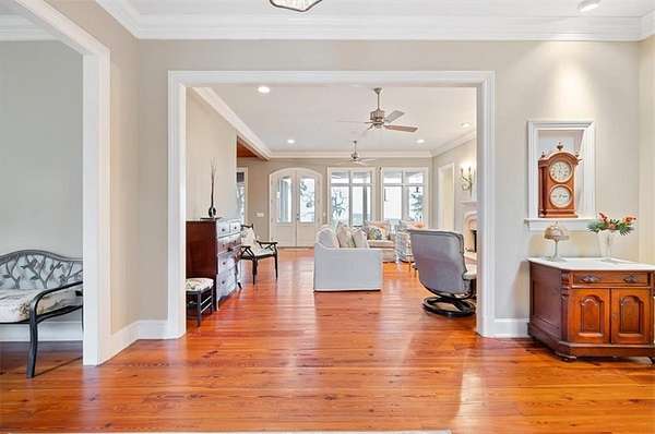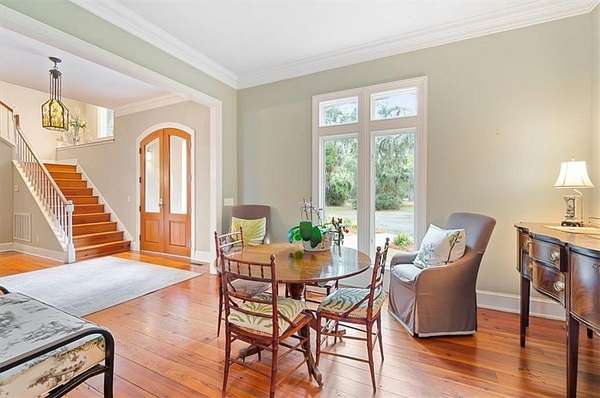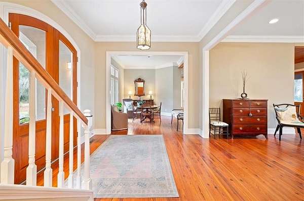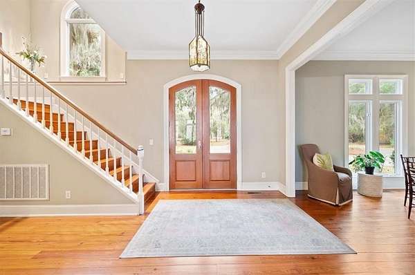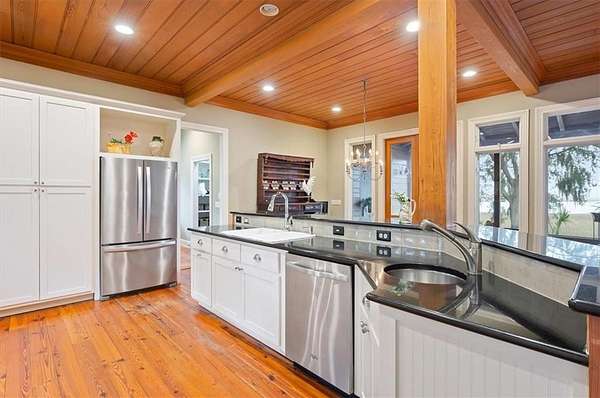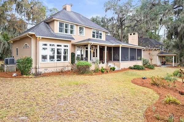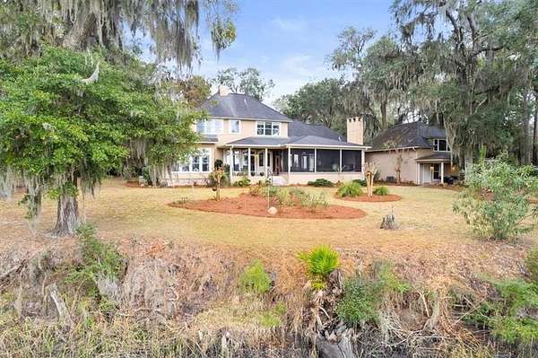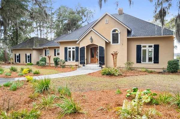 Nestled along the serene banks of the Julienton River, this stunning luxury estate offers an exceptional blend of Southern charm, modern comfort, and waterfront living at its finest. Set on 2.57 acres in a prestigious gated community, this home is perfectly positioned for those who seek both privacy and convenience. With deep-water access leading directly to the Atlantic Ocean, breathtaking river views, and proximity to the clubhouse and neighborhood dock, this property is a rare gem for boating enthusiasts and nature lovers alike. The main house is a masterpiece of craftsmanship, featuring three spacious bedrooms and three and a half bathrooms. The primary suite, located on the main level, serves as a private retreat with a lavish en-suite bathroom designed for ultimate relaxation. Upstairs, two guest bedrooms each boast their own private baths, offering comfort and privacy for residents and visitors. A versatile bonus room provides additional space, perfect for a media room, playroom, or home gym. Designed with both functionality and elegance in mind, the chef's kitchen is a dream come true for culinary enthusiasts. A striking tongue-and-groove ceiling adds character to the space, while high-end appliances, gas cooktop, and a walk-in pantry ensure effortless meal preparation. The adjacent wet bar and butler's pantry enhance entertaining possibilities, making hosting seamless and sophisticated. A formal dining room sets the stage for memorable gatherings, while the casual eat-in kitchen provides a cozy spot for everyday meals. The heart of the home is the inviting living area, where high ceilings and rich heart pine floors create a warm and welcoming ambiance. A grand fireplace serves as the focal point, perfect for cozy evenings. Step outside to experience true Southern living on the expansive screened-in back porch, complete with its own fireplace--an ideal setting for year-round enjoyment. An additional open porch allows you to take in the fresh coastal air and stunning river views. Adding to the home's thoughtful design is a dedicated dog-washing station, a unique feature that pet owners will appreciate. Beyond the main residence, a one-bedroom, one-bathroom guest apartment offers additional privacy for visitors or the perfect setup for a home office. With ample storage throughout the property, there is plenty of space to keep everything organized. The true highlight of this property is its unbeatable waterfront location. Whether you enjoy boating, fishing, or simply taking in the beauty of the river, this estate provides direct access to deep water, allowing you to embark on adventures to the Atlantic Ocean right from your backyard. The stunning views and tranquil setting make this home an unparalleled escape from the ordinary. With its blend of elegance, comfort, and prime waterfront positioning, this exceptional estate is more than just a home--it's a lifestyle. Experience the best of Lowcountry living in a private, gated community where every detail has been carefully curated for luxury and relaxation.