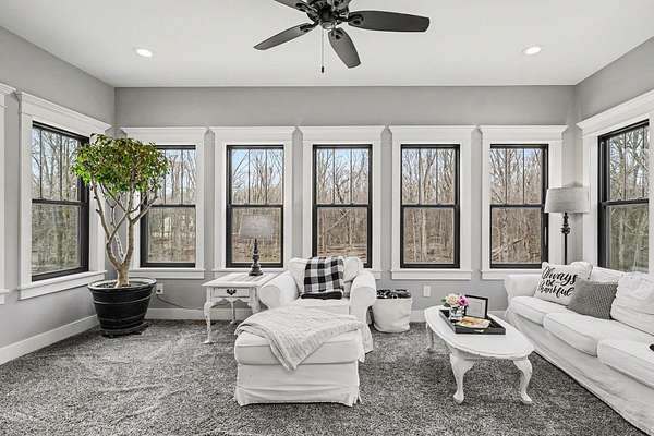 Gorgeous hilltop retreat on Grey! Step into this breathtaking Craftsman-style home, built in 2019, perched majestically on 8.67 acres. This property is a true showstopper, combining modern Luxury with timeless elegance. Enjoy 4 bedrooms including a main floor bedroom and 4 full baths, perfect for family living and entertaining guests. Gourmet chef's kitchen featuring dual islands, one for entertaining and the other for preparing meals. This kitchen dazzles with custom backsplash, granite counter tops, slow close drawers and doors by Green Forest Cabinetry, and a walk in pantry ensures ample storage. The vaulted ceilings create an airy feel throughout with a two story custom fireplace wall that serves as a focal point of the main floor. A designated closet office provides a quiet space for work, while a dining area offers a perfect setting for family meals or entertaining. A four season room off the kitchen allows natural light to flood the home providing tranquil space to unwind. Main floor guest room adjacent to the main floor full bath along with a pocket office closet, dining area, and mudroom with cubbies complete the main level. Retreat to the primary suite with his and hers walk-in closets and a luxurious full bath. Two secondary bedrooms, a full bath, and laundry wrap up this spectacular second level. The finished walkout lower level space is perfect for gatherings, featuring a cozy living area, a full bath, and plenty of storage. This home was constructed with Superior Walls that are 9' on the first floor, 8' second floor, and 10' for the lower level. Nestled in the woods, the private drive leads to a serene, park like setting ideal for relaxation. Enjoy the two concrete patios for all of your outdoor entertaining, fire pit area, the peaceful Bullock Creek, garden shed, raised garden beds, tons of recreation area, and a utility shed for all of your outdoor needs. The three car garage provides ample space for vehicles and hobbies. Situated in the highly sought after Bullock Creek School District, this exceptional property offers a perfect blend of luxury and nature. Don't miss the opportunity to make this dream home your own! Schedule your viewing today!