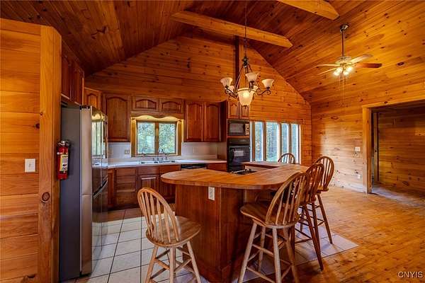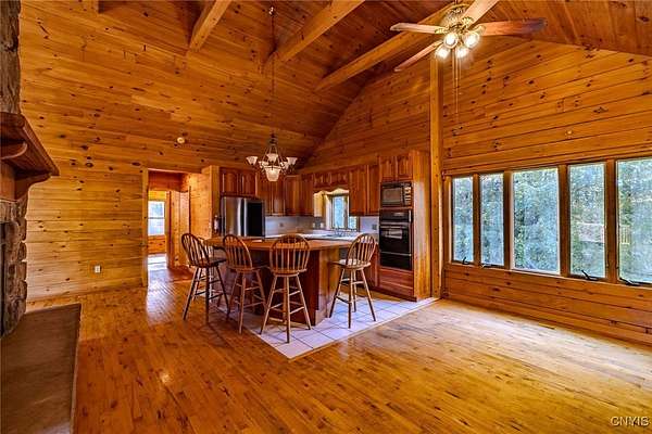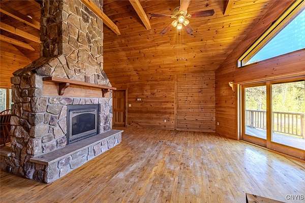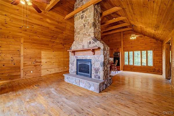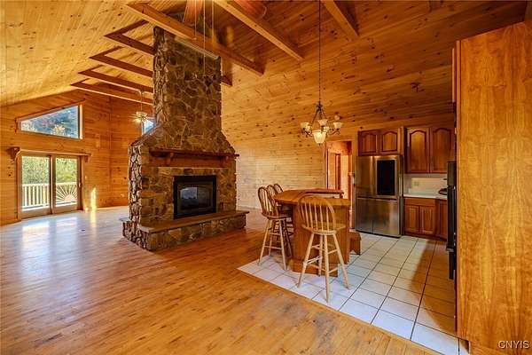 Est $2,247/moRustic charm meets modern comfort in this beautiful log cabin set on 9.47 serene acres. Surrounded by nature, this private retreat features a picturesque pond and timeless craftsmanship throughout. The heart of the home is a stunning center stone fireplace, creating a warm and inviting gathering space. Enjoy open-concept living with soaring wood-beamed ceilings, natural light, and views of the peaceful landscape from every window. Perfect as a year-round residence or getaway, this property offers endless opportunities for outdoor recreation, gardening, or simply relaxing in total tranquility!