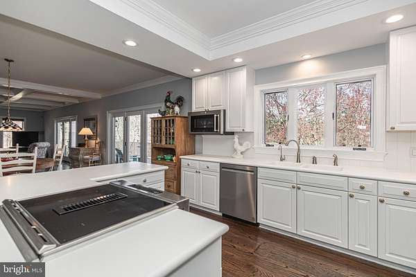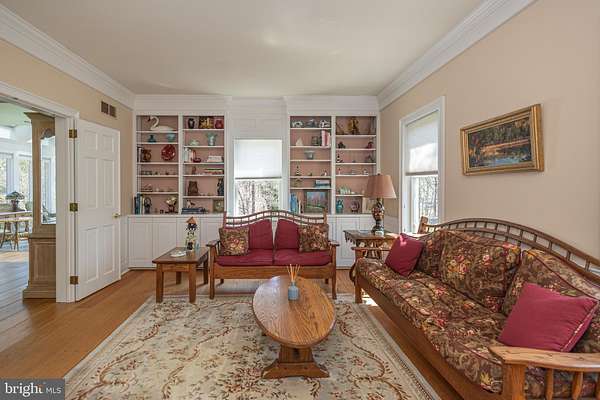 A charming, expanded Cape Cod nestled on just over 3 acres of meticulously landscaped grounds just minutes from historic Washington Crossing State Park. This residence seamlessly blends elegance, comfort and oneness of nature. From custom millwork and wide-planked oak floors to the expansive, light-filled sunroom; every detail has been thoughtfully designed and executed. The heart of the home is a spacious kitchen that flows into a spacious family room with a wood-burning fireplace. Entertaining effortlessly with a home theater and walkout lower level with full custom-built 3-tap 12-seat bar complete with a temperature-controlled wine cellar, game room, office, workout room and whatever else you can imagine. Upstairs you will find 4 bedrooms each with ensuite bath offering ample space for family and guests including a bonus private au pair/guest suite on the main level. The primary suite is a true sanctuary, featuring a cozy fireplace, private deck, and spacious bath. Beyond the interior, discover outdoor living at its finest: multiple decks, a paver patio, and a fire pit overlooking the lush landscape and serene creek. A temperature-controlled 7-car garage and a lawn irrigation system complement the outdoor space. We invite you to experience this exceptional property. Schedule your private tour today.