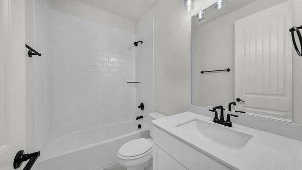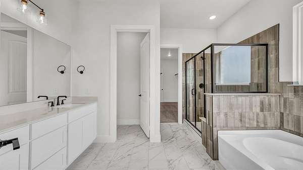 The main-floor primary suite offers a private retreat with a spa-inspired bath, separate tub and shower, and a walk-in closet connected to the laundry room for convenience. Upstairs, a bonus living area, fifth bedroom, and private bath create the perfect space for guests, a growing family, or an in-law suite. The exterior is beautifully landscaped with lush sod, colorful flowerbeds, full irrigation, and accent up-lighting that enhances the home's curb appeal.