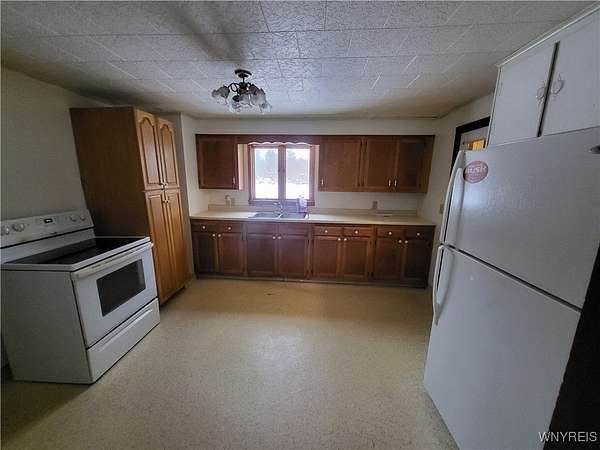 This house and 4.95-acre lot contains elements for various perspective buyers; from handymen and homesteaders to the families and investors looking to purchase an income property, this place has a lot of the necessary items for everyone. The large yard and surrounding forest create the perfect outdoor space for recreation, gardens or any other outdoor activities. The main floor possesses a few of the essentials; a large kitchen to entertain, a mudroom to catch the outdoor mess, a downstairs bedroom and the main bathroom. There is also plenty of open space that could be turned in to the perfect living room, dining room, family area or other entertainment style rooms. The second floor has 2 large bedrooms with multiple storage areas. This property has a septic and well that both passed Cattaraugus County inspections in 2025. This property is the perfect combination of country style living with endless opportunity.