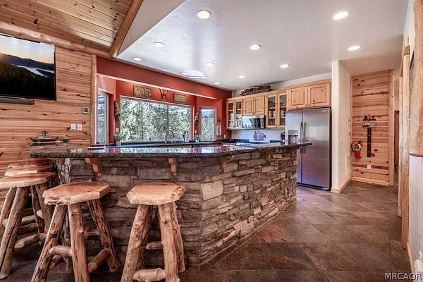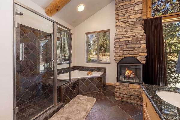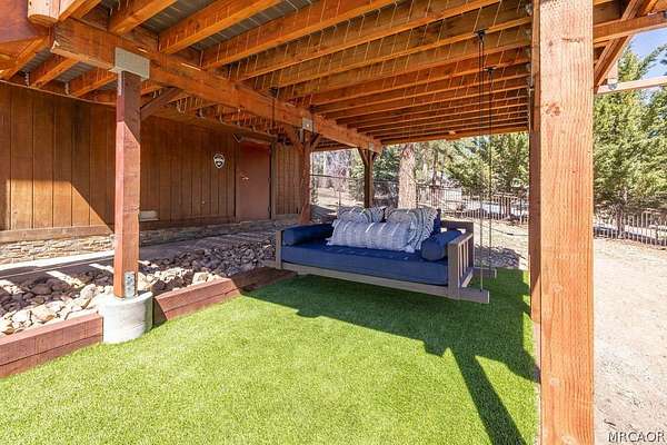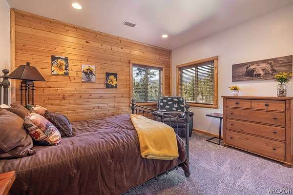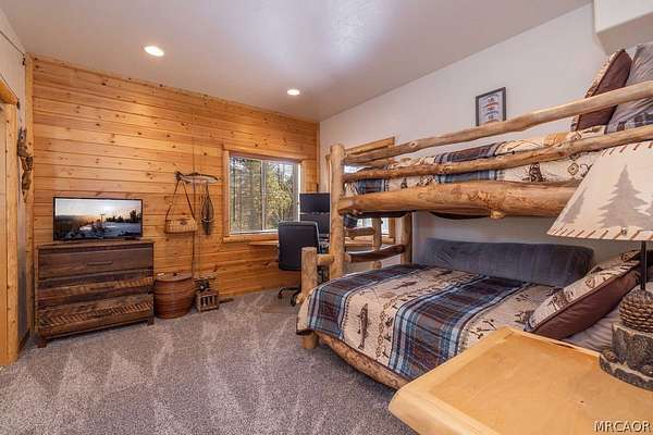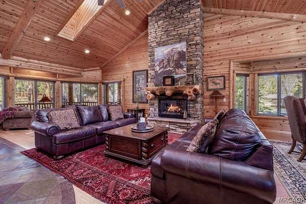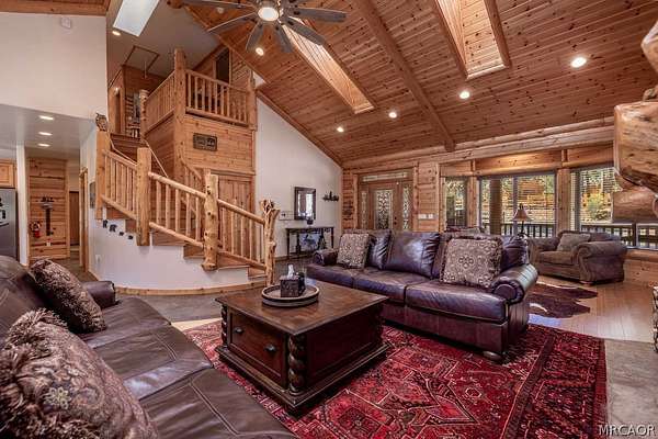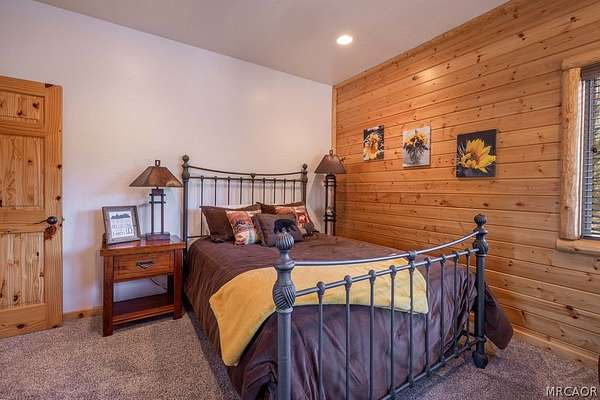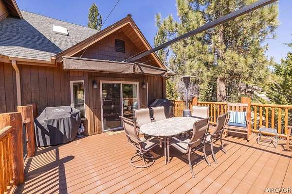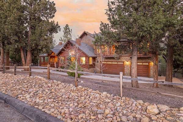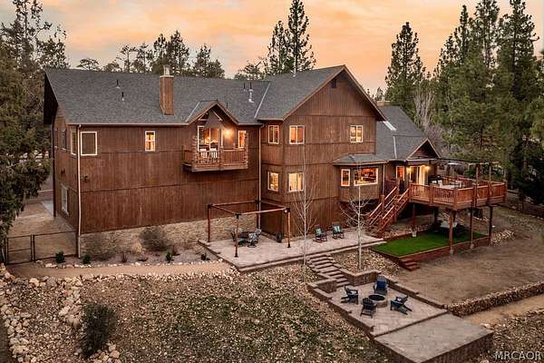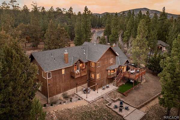 Pride of ownership shines throughout this well-maintained 5-bedroom home in Meadowbrook Estates, offering a spacious and light-filled floor plan. You'll love the grand living room with vaulted ceilings, the highly functional and upgraded 3-car garage, and seamless indoor-outdoor living ideal for both relaxing and entertaining. Situated on an expansive 1.5-acre parcel, the property offers added privacy, space, and a true sense of mountain living. Another notable highlight is a large game room with a built-in bar, creating the perfect setup for hosting multiple families or gathering with friends after a day on the slopes. Set in one of Big Bear's most sought-after neighborhoods, the property captures the true Meadowbrook lifestyle with a peaceful backyard enhanced by thoughtful landscaping, a newer deck with retractable shade, and a gas fire pit, perfect for enjoying evenings year-round. Recent quality upgrades include new appliances, updated bedroom flooring, a whole-house humidifier for added comfort, extensive improvements to the garage space, and real stone veneer on the exterior for timeless curb appeal. With its ideal setting, versatile layout for full-time or second-home living, and close proximity to the lake, trails, and town, this is a rare opportunity to own in one of Big Bear's premier communities.