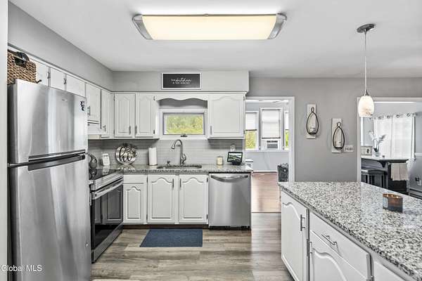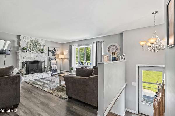 Welcome to this beautifully updated home featuring two floor-to-ceiling stone fireplaces and Lifeproof plank flooring throughout (2022). The warm and spacious 3-seasons room offers ample natural light as well as more space for guests and entertainment. The kitchen includes stainless steel appliances, natural granite countertops, and a whole-house water filtration systemall new in 2023. Upstairs bedrooms have new windows (2022), and the downstairs master bedroom includes an unfinished bath/laundry room for future expansion. Recessed lighting brightens the entire downstairs. Enjoy a peaceful backyard with a creekproperty extends to the other side for added privacy.