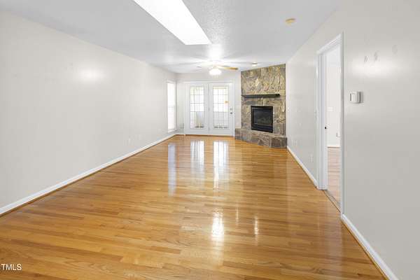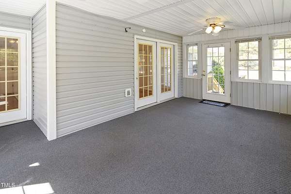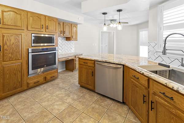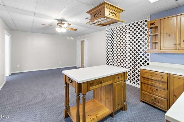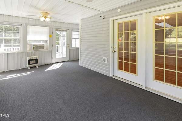 Welcome to 1046 Ponderosa Trail where flexibility, charm, and space come together in the Carolina Seasons community. This ranch-style home on 1.57 acres offers a rare combination of main-level living and a partially finished walkout basement perfect for multigenerational living, guests, or added entertaining space. Inside, the kitchen features granite countertops, a stylish tile backsplash, and a sunny breakfast nook. A dedicated office or flex space sits just off the entryway, while the living room features a stone fireplace and opens to a light-filled sunroom and large back deck overlooking your private lot. Downstairs, the basement includes its own bathroom and space for a second kitchen plus a golf cart garage for added storage. Outside, you'll find a circle driveway for everyday convenience and a second private drive leading to the detached 3-bay garage with an RV-height door an ideal setup for hobbyists, travelers, or extra vehicles. All of this just short commute from Fort Bragg. Don't miss this one-of-a-kind opportunity in Carolina Seasons.