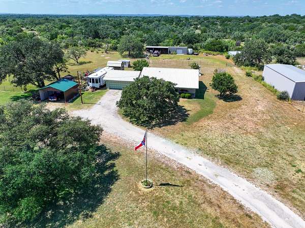Charming 2 Bed, 2 Bath Home on 3.40 Acres - Minutes from Lake Buchanan. Nestled on 3.40 unrestricted acres just off Hwy 1431, this beautiful property offers peaceful country living with commercial potential. Located just minutes from Lake Buchanan, the property features a well-maintained 2 bedroom, 2 bath home with an open-concept layout and plenty of room to spread out. Inside, you'll find a spacious living area perfect for entertaining, a generous master suite with a walk-in shower, soaking tub, double vanities, and large walk-in closets. The kitchen boasts updated appliances, ample cabinet storage, and expansive counter space. Outside, enjoy a fully fenced property that backs up to a sprawling 5,000-acre ranch, offering privacy and stunning views. Additional features include a 2-car garage, 2-car detached carport, RV hookup, a barn with dedicated horse and hay storage, and a scenic tank/pond. Whether you're looking for a serene homestead, horse property, weekend getaway, or a location with commercial potential, this property is a rare find with endless possibilities!