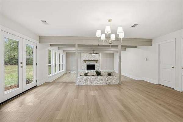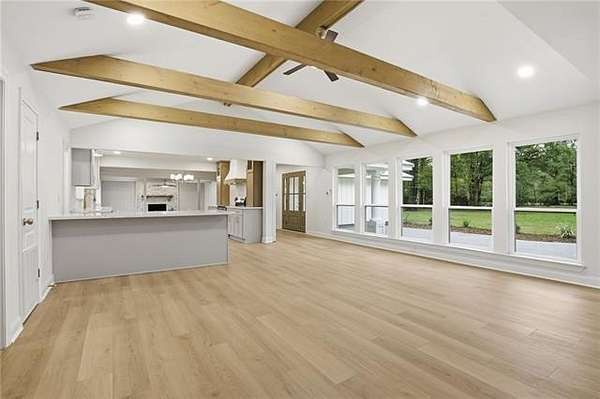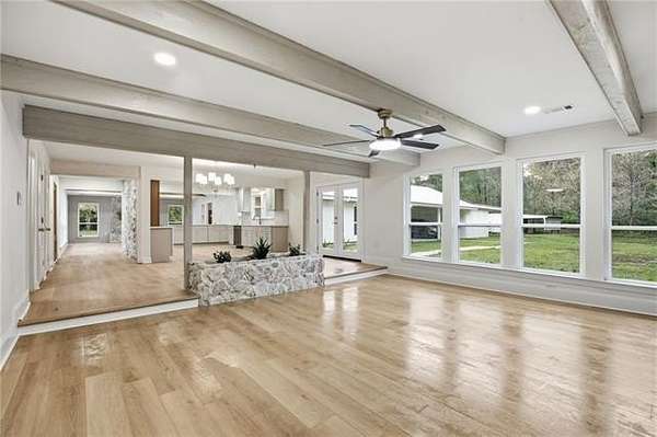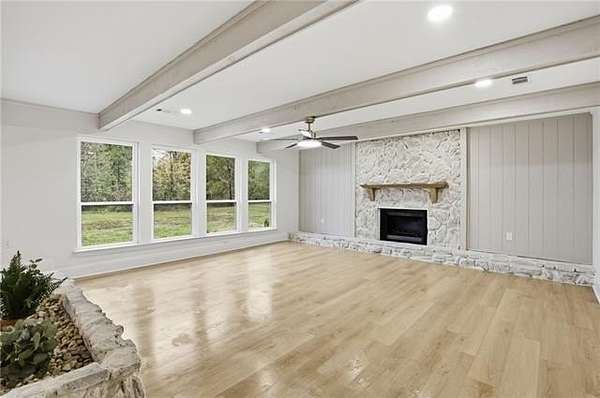Nestled on almost 3.5 acres of land, this fully renovated, thoughtfully redesigned, and move-in ready, home blends modern finishes with warm, timeless character on. Inside, the open living spaces feature new luxury flooring, with expansive living areas and serene views. The exposed beams, abundant natural light, and two statement stone fireplaces create an inviting atmosphere ideal for both everyday living and entertaining. At just under 4,000 sqft of living space, you will find 5 bedrooms and 4 full baths with the option of two primary suites. In the rear wing of the home, you'll find 3 additional bedrooms with 2 full baths, laundry, and access to the carport.