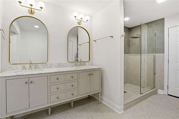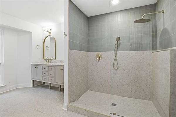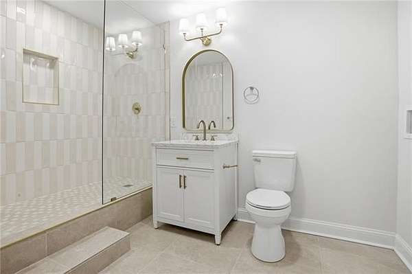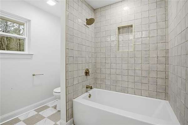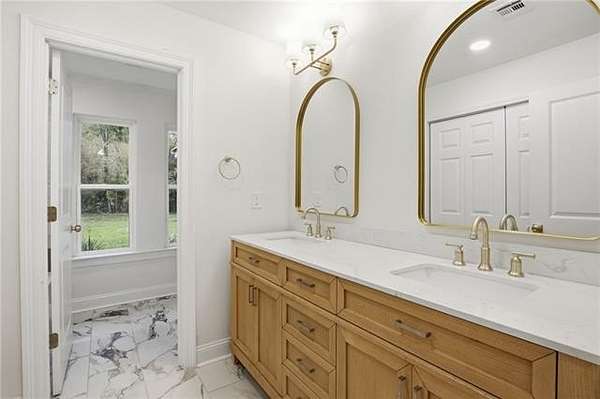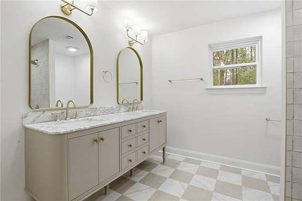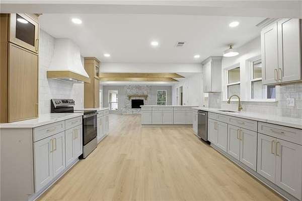 The completely reimagined kitchen was taken down to the studs and rebuilt with new cabinetry, custom quartz countertops, designer backsplash, a hand built hood vent, updated fixtures, and new appliances. Offering both style and function. Multiple renovated bathrooms showcase luxury tile flooring, custom tile surrounds, new vanities, fixtures, and modern finishes.