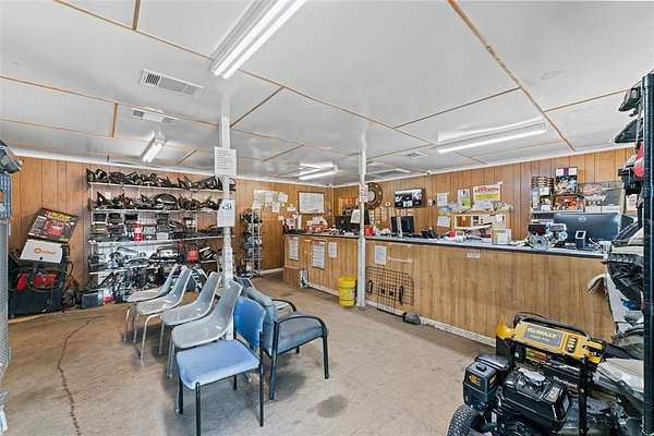 The fully fenced and graded site features approximately 9,868 square feet of existing improvements, including a metal warehouse, office space, and a separate residential structure that may support interim occupancy, operations, or administrative use. Zoned for commercial and industrial purposes, the property allows for a wide range of potential uses and benefits from established infrastructure, including water, electricity, septic, and internet access.