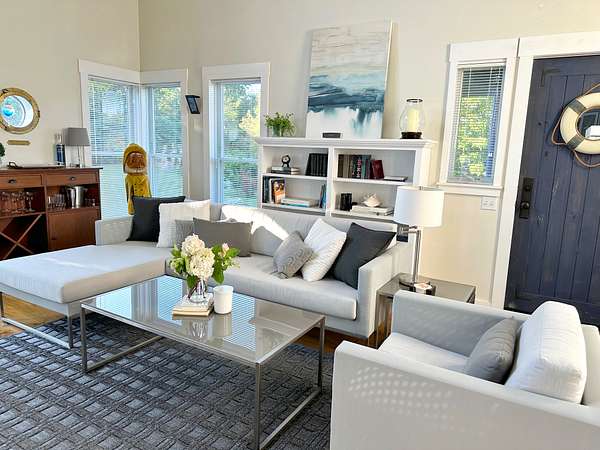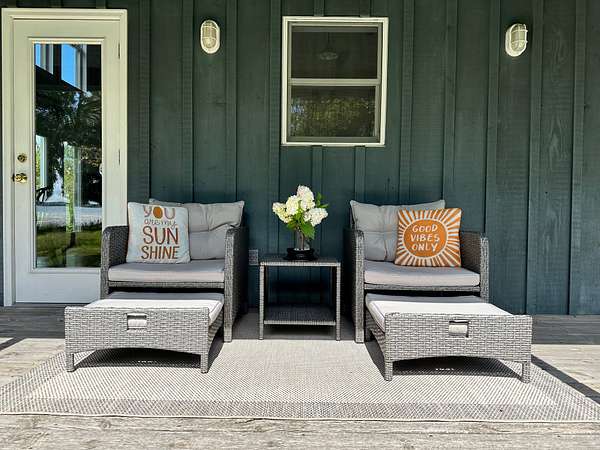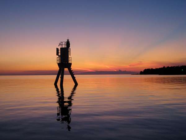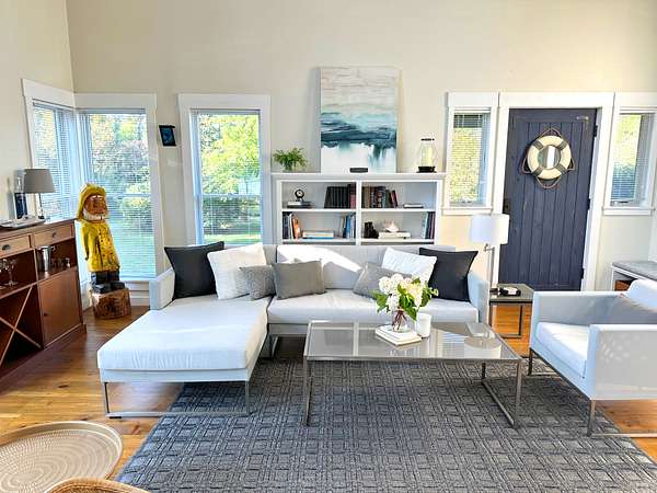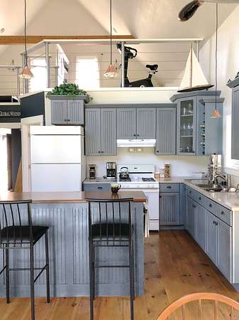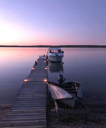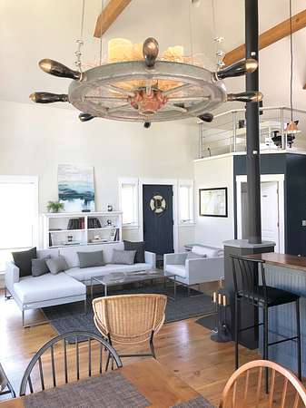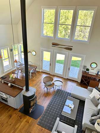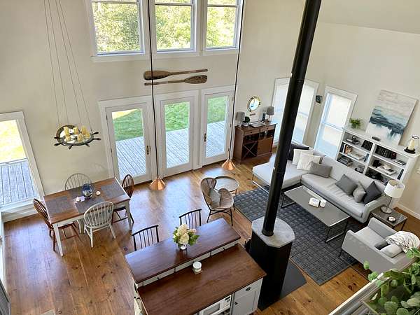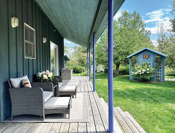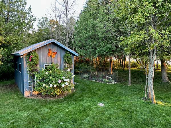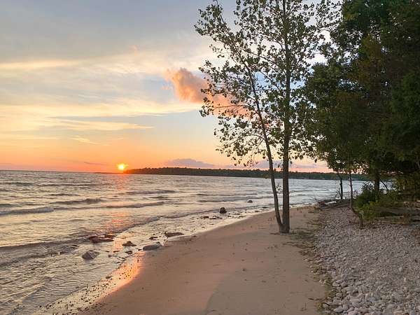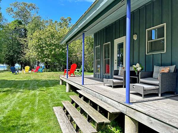 DOUBLE SHOREFRONT ISLAND BEACH HOUSE. ONCE IN A LIFETIME OPPORTUNITY TO OWN A PIECE OF DOOR COUNTY'S ISLAND PARADISE! Over 700ft of shoreline! Here's your chance to own a rare island retreat! This furnished, beach cottage is comfortably nestled between 450ft of Lake Michigan shoreline and 250ft of a pristine private sandy beach in Pedersen Bay. This off-grid, three-season retreat, blends modern comfort with nature's bounty. The RAIS® wood-burning stove, with its sleek Scandinavian design, anchors the open-concept living area, inviting cozy warmth and style. Flanked by expansive windows, the living space offers breathtaking views of the surrounding landscape and the vibrant sunsets over the water, with boats and ferries drifting by. The soaring 24-foot ceiling in the great room floods the space with natural light, enhancing the airy, open feel. The kitchen features custom KraftMaid cabinets and unique concrete countertops. The home boasts renewable energy solutions; solar power, a 12-volt system, and a backup 6,500-watt gas generator...ensuring complete self-sufficiency. A detached cottage adds versatile space, ideal as a third bedroom, artist studio, or extra storage. Surrounded by million-dollar views of crystal-clear waters, this property offers a Caribbean-like ambiance paired with prime fishing opportunities; Smallmouth Bass, Salmon, and Walleye...making it a true outdoor lover's paradise.