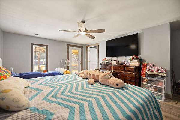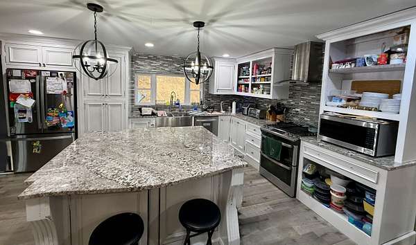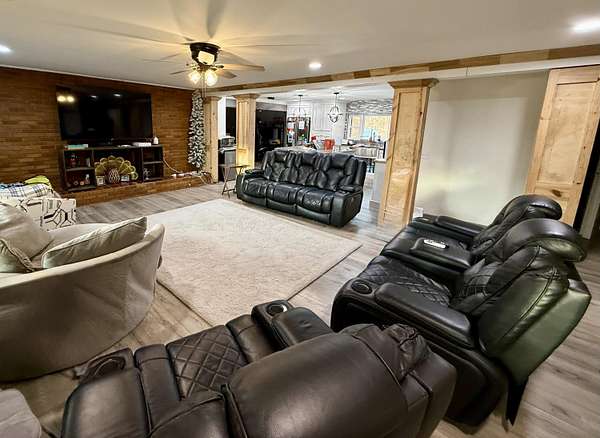 Spacious and full of potential, this 5-bedroom, 4-bath home offers 2,446 sq ft on the main level plus a fully finished basement, all situated on a peaceful 2.67-acre lot. Several key updates have already been completed, including a newer HVAC system (within the last 5 years), a water heater replaced approximately 4 years ago, and a durable metal roof installed in 2014. The partially updated kitchen, living room, and primary bathroom feature stainless steel appliances, upgraded lighting, and modern touches throughout. The primary suite is a true retreat, offering a large walk-in closet, his-and-her vanities, an upgraded stand-up tiled shower, and a spacious soaker tub accented by a statement chandelier overhead. The primary bedroom also opens directly to the wraparound deck, creating a perfect indoor-outdoor flow. The great room features a fireplace that is currently non-functional but could be converted to a ventless system of your choice. Outside, there is ample space to store a boat or RV, park multiple vehicles, and enjoy the privacy of the 2.67-acre setting, along with an additional storage building for added convenience. With generous square footage, recent mechanical updates, and room to add your own finishing touches, this property presents an excellent opportunity to customize a home with space, privacy, and long-term value.