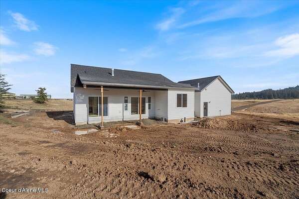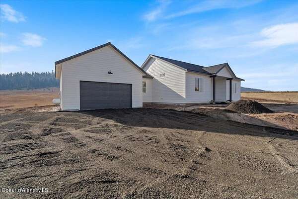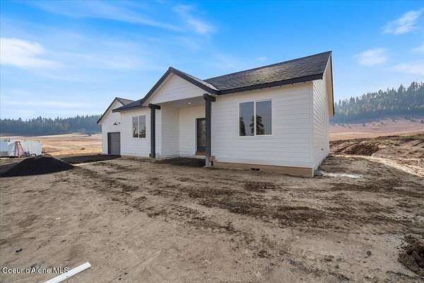 Brand new 3 bed, 2 bath custom home on 10 scenic acres-ideal for a hobby farm and embracing the rural lifestyle! Enjoy panoramic views of rolling fields and forested mountains in a peaceful country setting with no HOA or CCRs. Conveniently located just 45 minutes from CDA and Spokane. This thoughtfully designed home will feature Hardie(R) lap siding in Alabaster with Iron Ore trim, white vinyl windows, composite front and back decking, re-sawn posts and beams, composition roof, and a 3/4 lite glass front door. Inside, you'll find white cabinetry with black hardware, quartz countertops, Frigidaire 4 piece appliances, a farm-style sink, cozy built-in fireplace, craftsman-style doors, and a whole-home water filtration system. The master suite has a tiled walk in shower and ample closet space. With a new 60+ GPM well, insulated garage, heated utility space. Potential Buyer Incentives for rate buy down. Great opportunity for a new home on 10-acres in a tranquil setting!