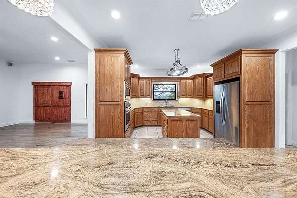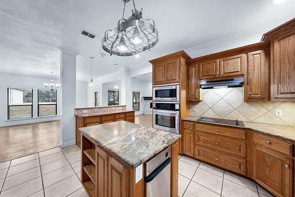 - Decorative Lighting, Double Vanity, Eat-In Kitchen, Granite Counters, Kitchen Island, Open Floorplan, Pantry, Sound System Wiring, Walk-In Closet(s)