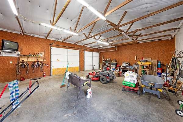 Situated on 2.63 acres in Timber Ridge Estates, this beautifully maintained single story home offers the perfect blend of comfort, space, and functionality just outside city limits. Built in 2006, the 3 bedroom, 2 bath residence features over 3,100 square feet with an open floorplan, wood and tile flooring, decorative lighting, and a spacious living area anchored by a stone wood burning fireplace. The kitchen is designed for both everyday living and entertaining with granite countertops, a large island, breakfast bar, walk in pantry, built in cabinetry, and eat in dining area. The private primary suite includes an ensuite bath with separate vanities, garden tub, separate shower with body sprays, and a custom walk in closet system. Outside, the gated property is ideal for those seeking versatility, featuring a 30 by 23 metal shop with kitchen and full bath, additional garages, RV or boat storage, greenhouse, chicken coop, small livestock pen, gazebo style deck, and mature trees providing shade and privacy. A covered front and rear porch, fenced acreage, and ample parking complete this exceptional property offering peaceful country living with convenient access to nearby amenities.
