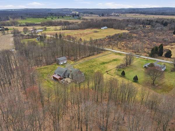 Tucked away on a peaceful 3.97-acre county parcel, this beautifully maintained 1.5-story home offers the kind of space, privacy, and versatility that's getting harder to find-yet it's all located within just 7 miles of the Millcreek City of Erie line. Built in 2006, it has a layout that truly works for everyday living. Nearly four acres of open, usable land surround the home, creating a sense of calm and freedom, room to breathe, roam, and enjoy the outdoors on your own terms. Step inside and you're greeted by a dramatic vaulted great room that serves as the heart of the home. The soaring ceiling and floor-to-ceiling wood-burning fireplace create an inviting, lodge-like atmosphere that's both cozy and impressive. First-floor laundry further enhances the home's practicality, plus first floor primary bedroom and added office/4th bedroom. Detached building with additional 2nd floor finished space with bathroom