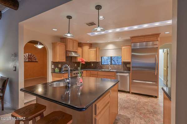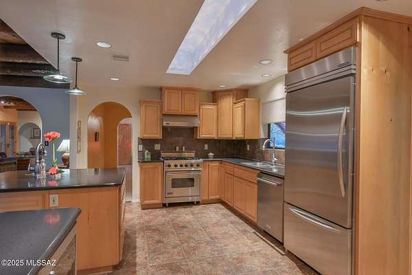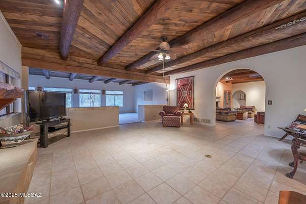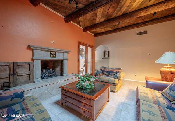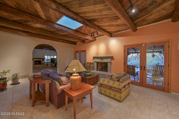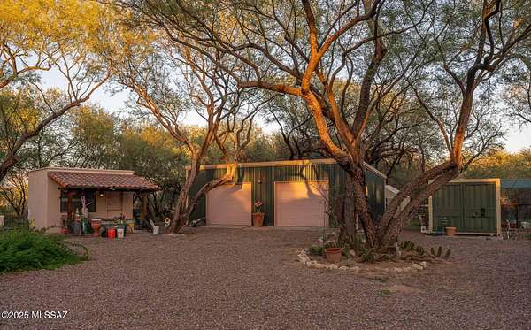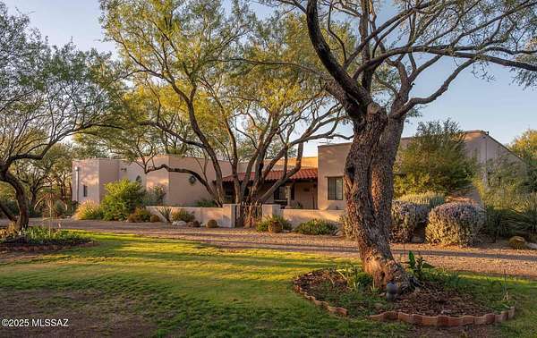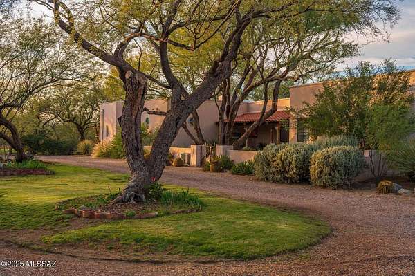 Experience unparalleled privacy, natural beauty, and Southwest luxury on this extraordinary gated estate along the Tanque Verde Wash. Set on 7.88 acres within a rare, mature mesquite bosque, this exceptional property offers a refined sanctuary with a beautifully updated main residence, a charming guest house, a tack/garden house, and a fully enclosed barn-all thoughtfully designed for comfort, functionality, and equestrian versatility. Zoned SR, the estate also offers the potential for future lot division. Main Residence - Step inside to a masterful blend of rustic elegance and modern sophistication. Artisan-crafted barnboard ceilings, exposed pole beams, saguaro rib detailing, and aspen log accents create a warm, authentic ambiance........ Solid knotty alder doors throughout, Chef-inspired kitchen featuring stainless steel appliances and custom finishes, Expansive laundry room with exceptional storage, Luxurious primary suite with dual bathrooms and a generous walk-in closet, Two stately fireplacesone gas, one wood-burningboth framed by flagstone hearths, Multiple outdoor living areas, including two grand patios ideal for entertaining, complete with a built-in grill. A serene front courtyard showcasing lush landscaping, flowering plants, and a tranquil fountainan oasis for bird enthusiasts! Large, impeccably organized two-car garage with custom cabinetry and workbench Guest House - A refined retreat perfect for hosting or generating rental income: Two well-appointed bedrooms, Washer/dryer hookup, Sleek, full kitchen with stainless steel sink and quartz countertops, 2024 upgrade: new AC unit Estate Features - Strong, well-maintained private well with holding tank, New AC units installed in 2024 for both main house and guest house, Rinnai tankless water heaters (two for the main residence, one for the guest house), Whole-house water filtration system on the main residence, Greenhouse plus a fully fenced, irrigated garden with raised galvanized beds, Professionally maintained mesquite bosquemeticulously cleared of deadwood, disease, and mistletoe, Beautiful, mature landscaping that enhances the estate's natural serenity!
