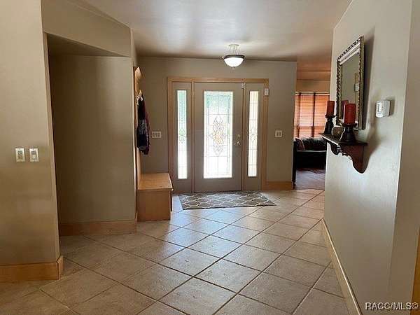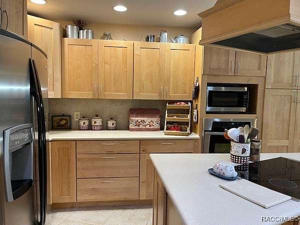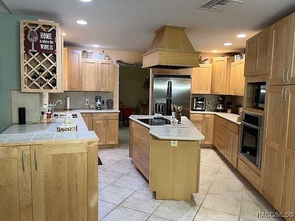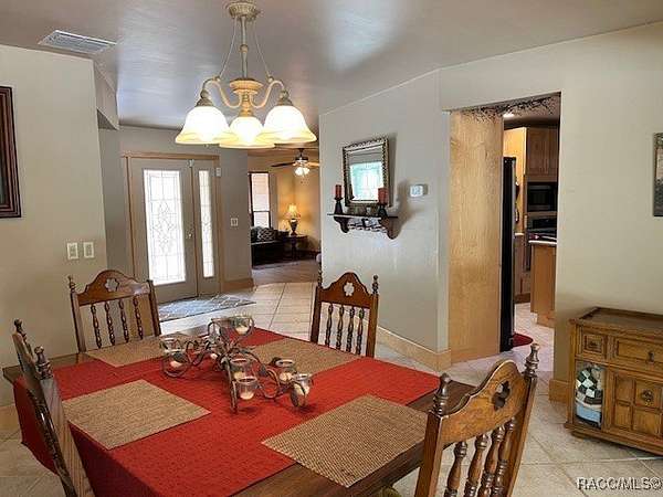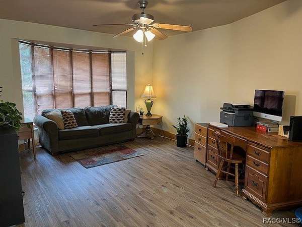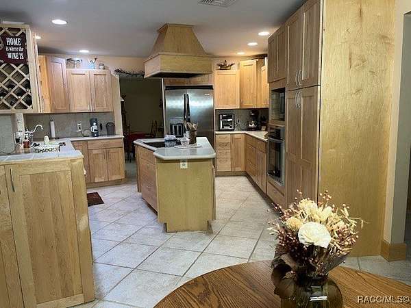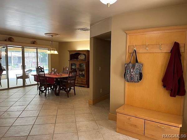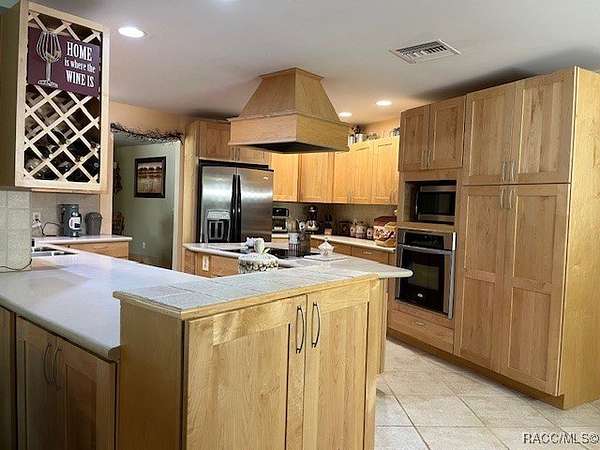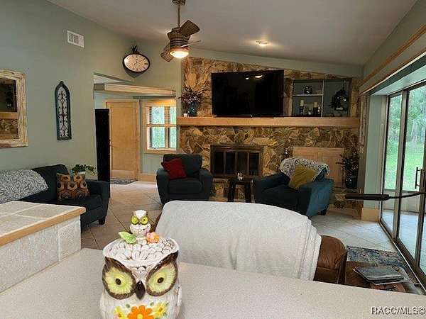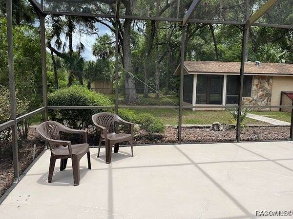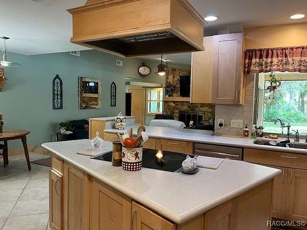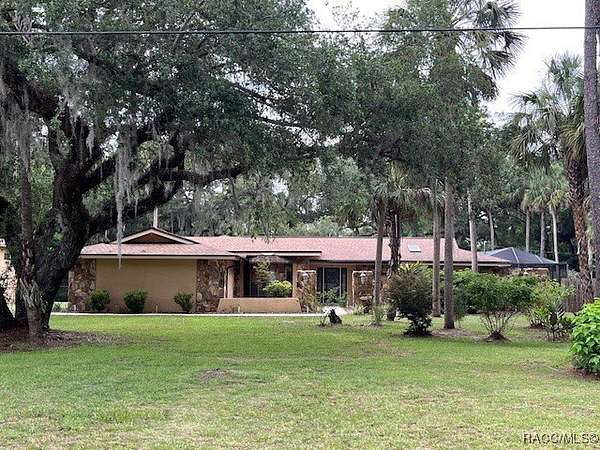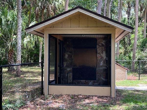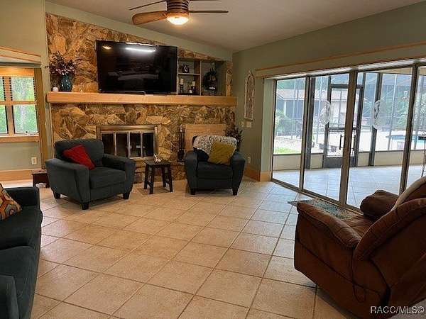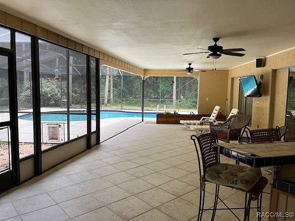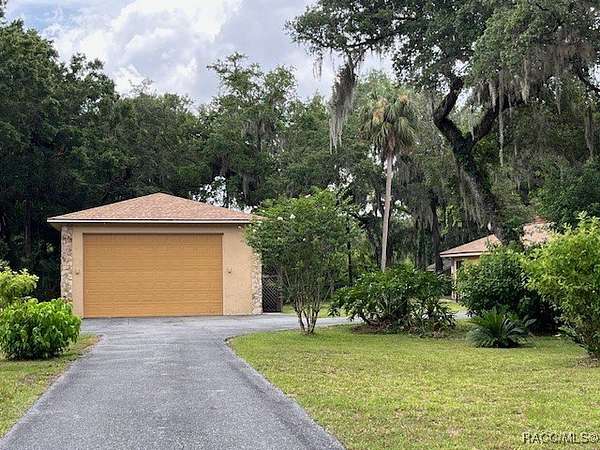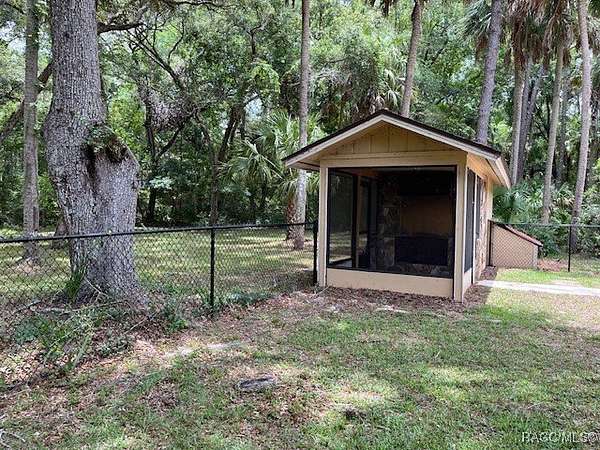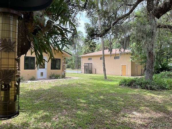 Spectacular pool home with 3.39 wooded acres. 3 bed 2 bath split floor plan with 2 car attached garage. Eat-in kitchen with custom wood cabinetry, Corian countertops and large island. Interior laundry, tile and vinyl plank flooring, formal living room, dining room and large family room off kitchen with wood-burning fireplace and bonus nook--home office, craft or sewing space. 3 sets of large slider doors lead to back covered patio which includes wet bar with pass-through from kitchen, entertainment area, screened lanai and room to sun-bathe. Back yard has both fenced area for pets, smokehouse and shed. Enjoy watching wildlife including deer, hummingbirds and other Florida fauna enjoy peace and quiet. Large additional RV garage with heavy vehicle lift. Whole house propane genset. Roof 2020.