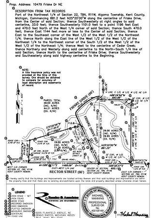 Rare opportunity to own approx 23 acres in Algoma Township within Rockford Schools, just minutes from town yet offering a setting that feels 100s of miles away. This parcel is being split from a larger 42 acre property, with the portion outlined in white in photos being offered for sale (subject to township approval). Offered at $65,000 per acre. The property features a blend of open ground and wooded acreage with frontage along Cedar Creek, known for its trout fishing and scenic beauty. Several potential building sites overlook the creek offering incredible views and privacy. Potential for up to 6-7 splits (subject to township approval). Zoning allows approx 1.93 acre minimum parcels with 200' frontage and approx 100' creek setbacks. Located near public land and the Cedar Creek corridor. Survey completed. Owner lives on site. Agent must be present for all showings. Buyer to verify all information. Call or text listing agent for a showing.